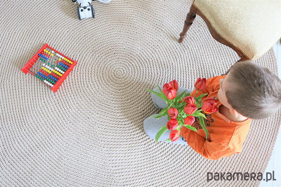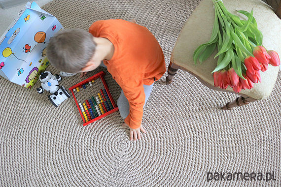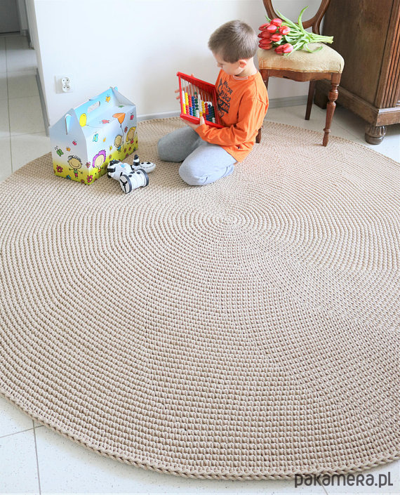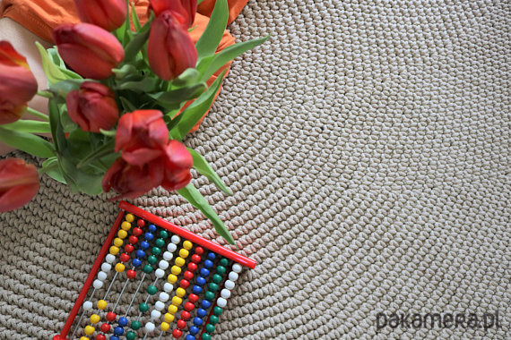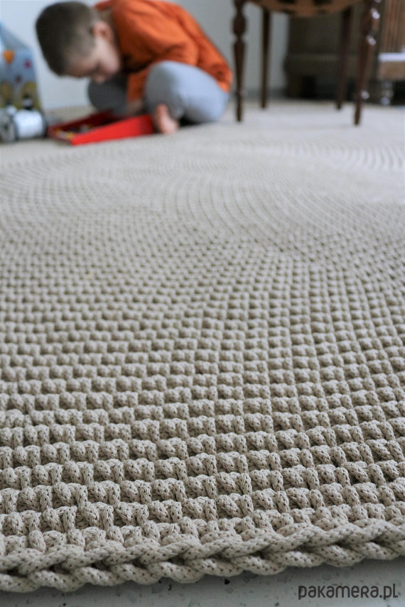 DYWAN WYKONANY RĘCZNIE O GĘSTYM SPLOCIE Z PÓŁSŁUPKÓW PLECIONY NA SZYDEŁKU ZE SZNURKA BAWEŁNIANEGO 6MM