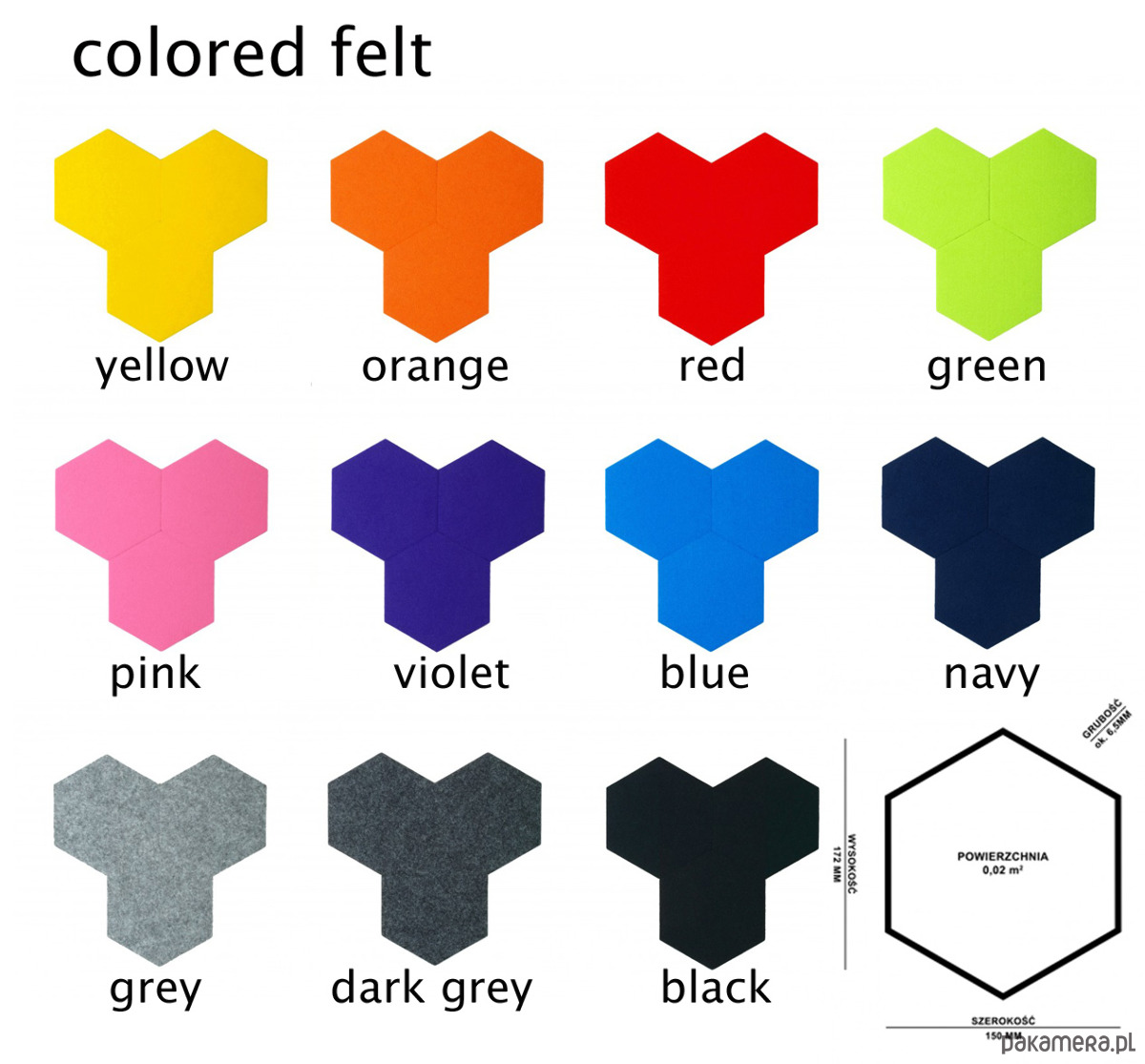 Panel korkowy/filc (150 x 172 x 6,5 mm) - 3 szt. - kolor do wyboru
