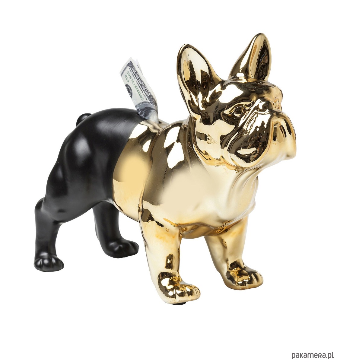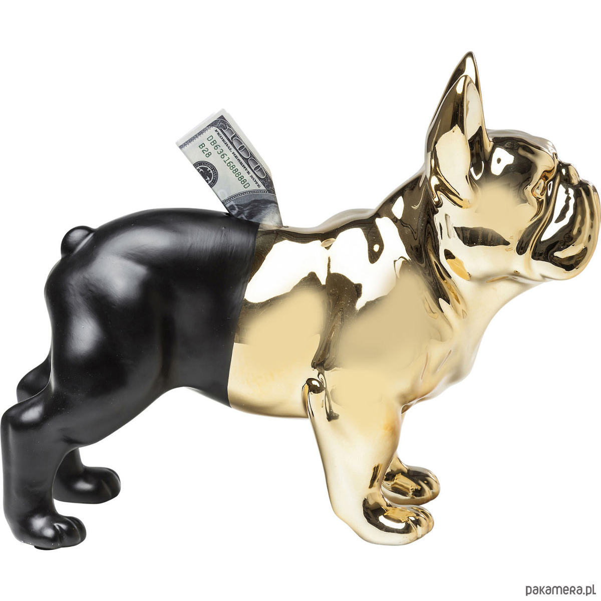 Stylowa skarbonka Buldog Gold-Black to wymarzony prezent dla każdego miłośnika psów, a w szczególności buldogów. Ciekawie wykonanie - połączenie złota z czernią i świetnie odwzorowanie detali sprawia, że nie można od niej oderwać wzorku. Ustawiona na półce lub regale będzie wspaniałą dekoracją nowoczesnego wnętrza. Skarbonka wykonana została z kamienia.