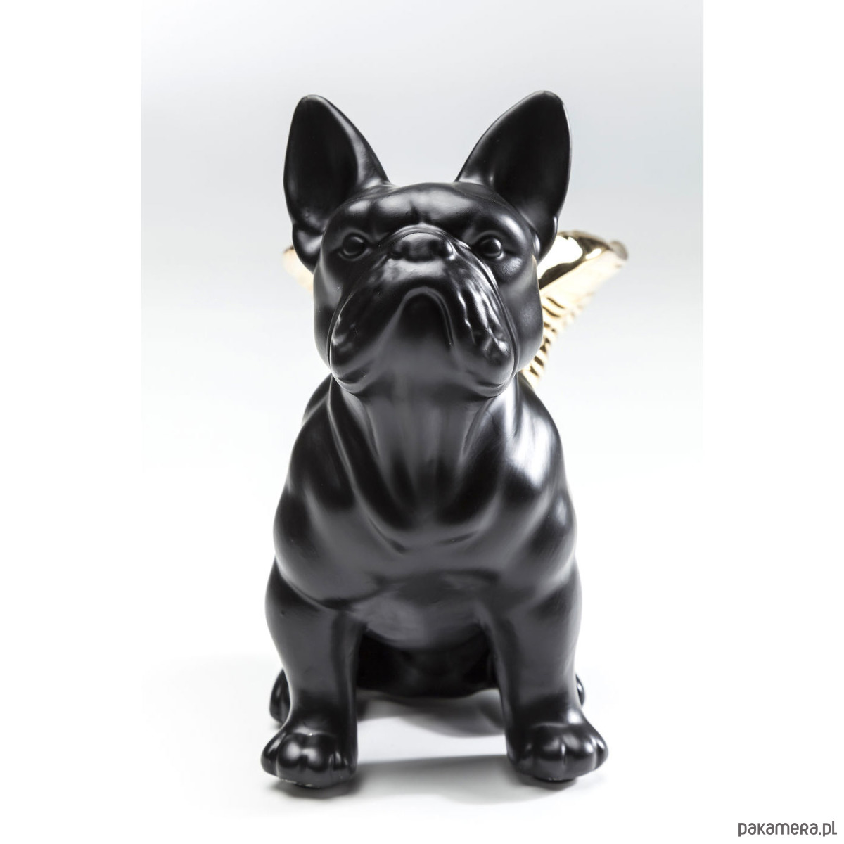 Nie od dziś wiadomo, że pies to najlepszy przyjaciel i anioł stróż człowieka. Ta urocza skarbonka tylko to potwierdza. Śliczny, czarny, miniaturowy bulldog ze złotymi, maleńkimi skrzydełkami chwyta za serce od pierwszego wejrzenia. Skarbonka z pewnością przypadnie do gustu wielbicielom czworonogów, świetnie nada się również jako prezent, zwłaszcza dla dziecka.