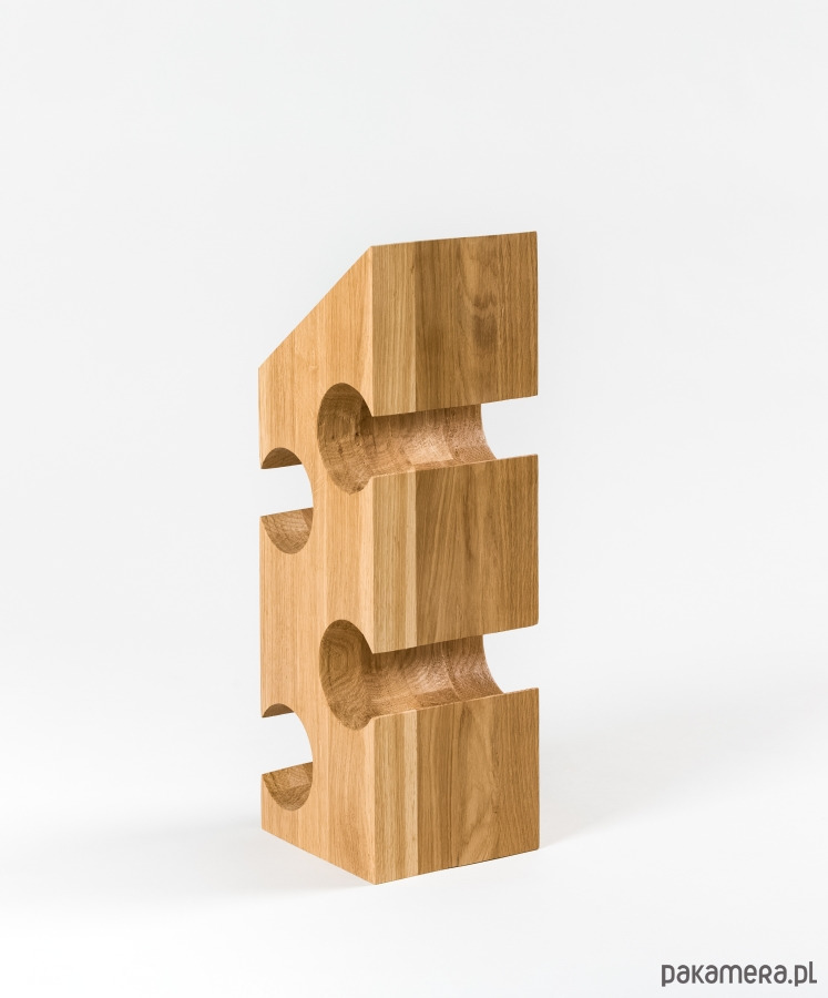 Stojak wykonny z drewna dębowego wykończonego olejem, kolor naturalny.