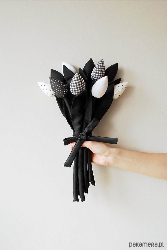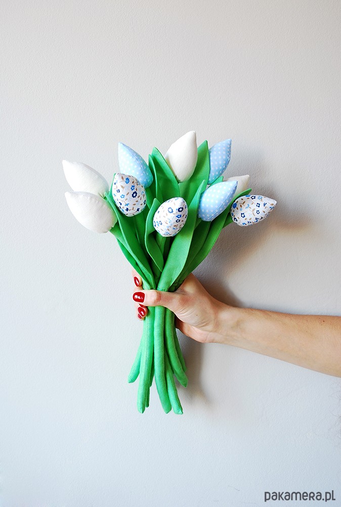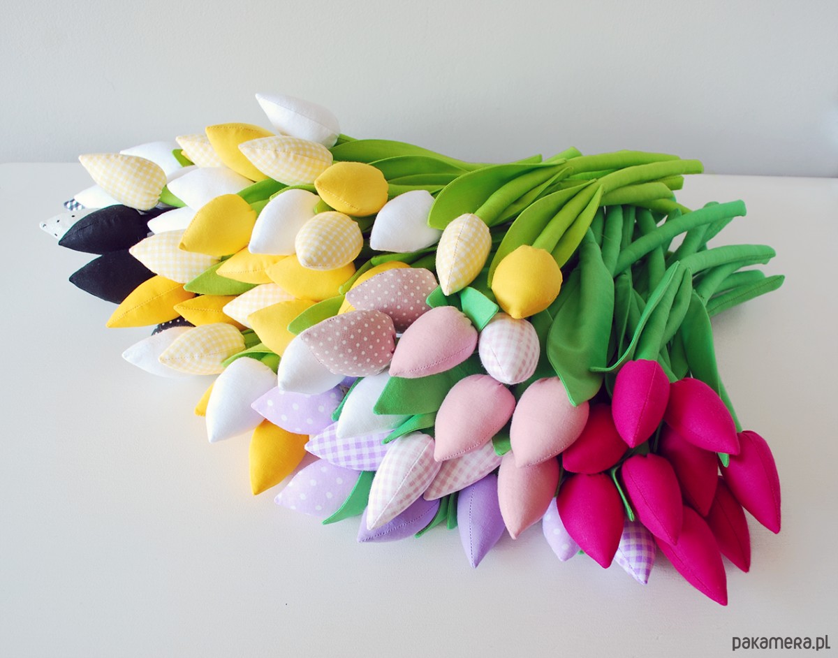 Na bukiet składa się 10 tulipanów uszytych z wybranej przez Ciebie tkaniny, w wybranym kolorze i wzorze. Każdy tulipan jest starannie wypełniony antyalergicznym włóknem dzięki czemu kwiaty są sztywne i trzymają swój fason :)