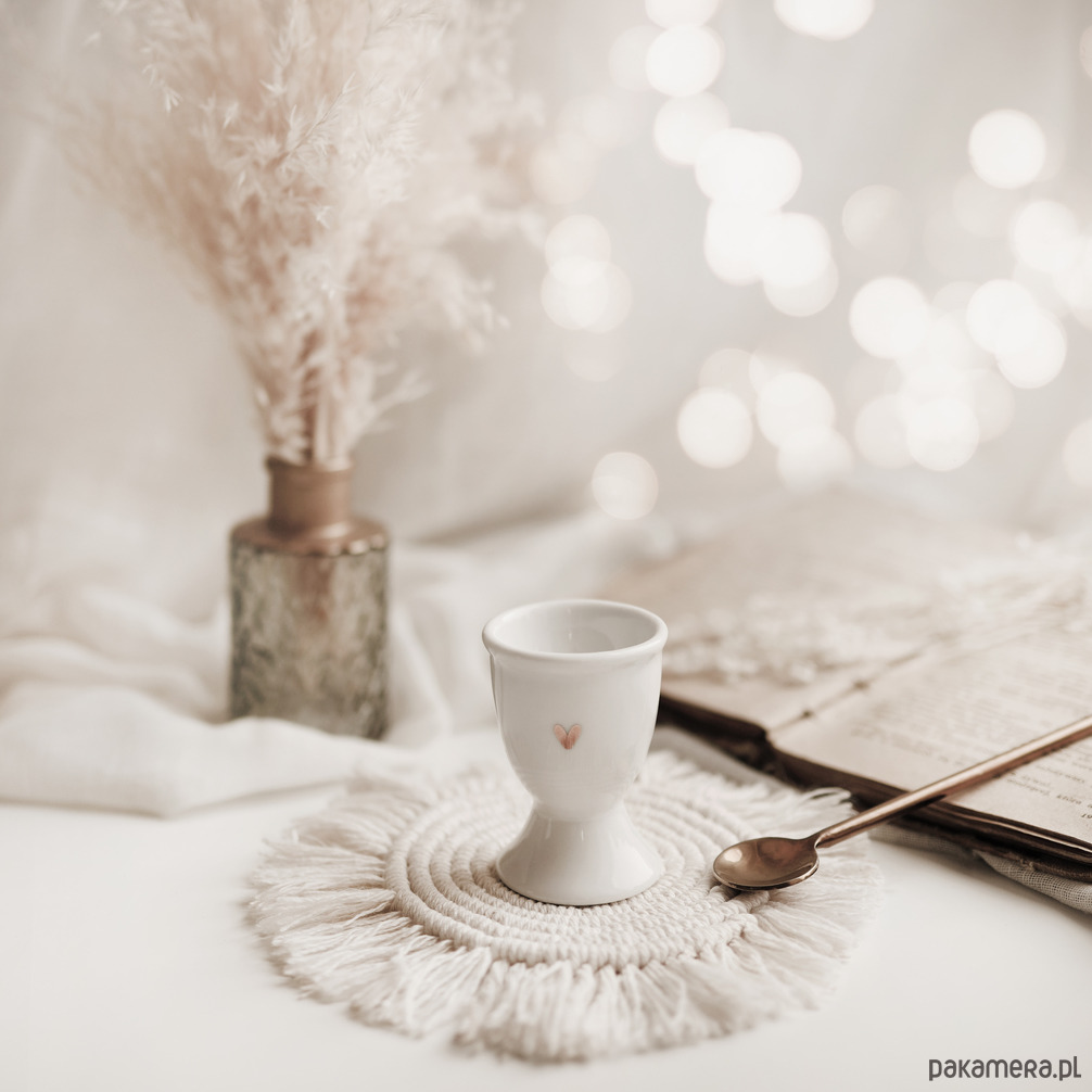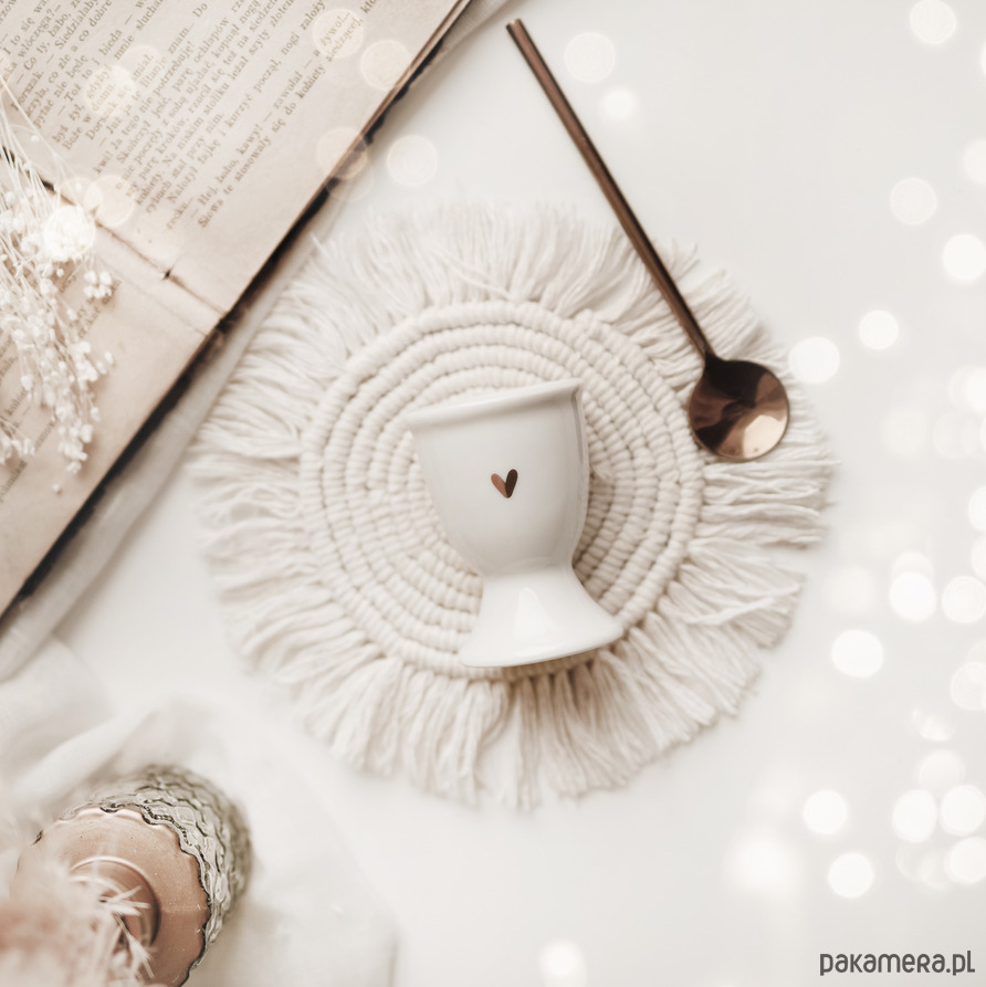 Nadzwyczajny, porcelanowy, ręcznie malowany kieliszek na jajko - ZŁOTE SERCE