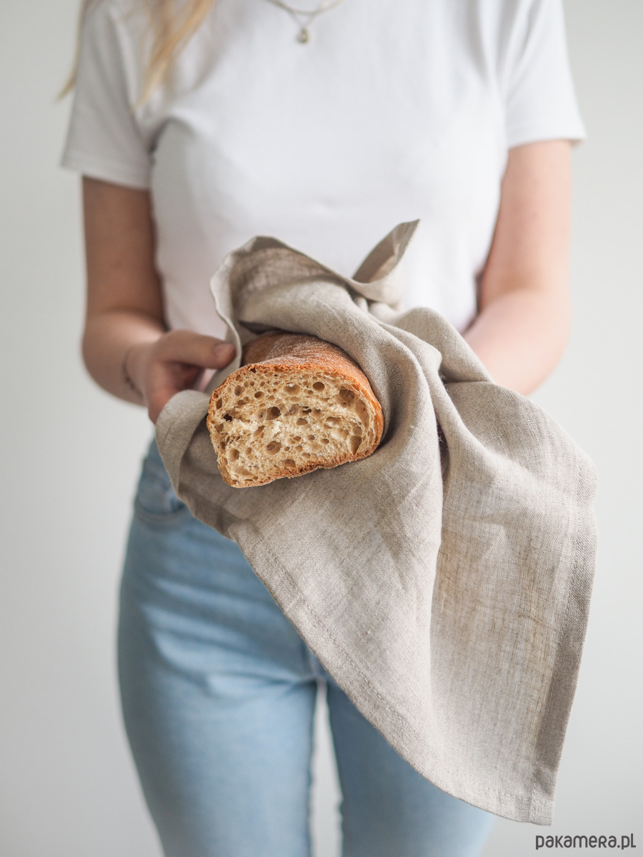 Ściereczka lniana 45 x 60 cm z zawieszką wykonana z wyjątkowo miękkiego i przyjemnego w dotyku lnu typu stonewashed. Dzięki właściwościom absorpcyjnym szybko wchłania wodę. Sprawdzi się nie tylko do wycierania rąk i naczyń, ale także stanie się naturalnym akcentem dekoracyjnym w Twojej kuchni.