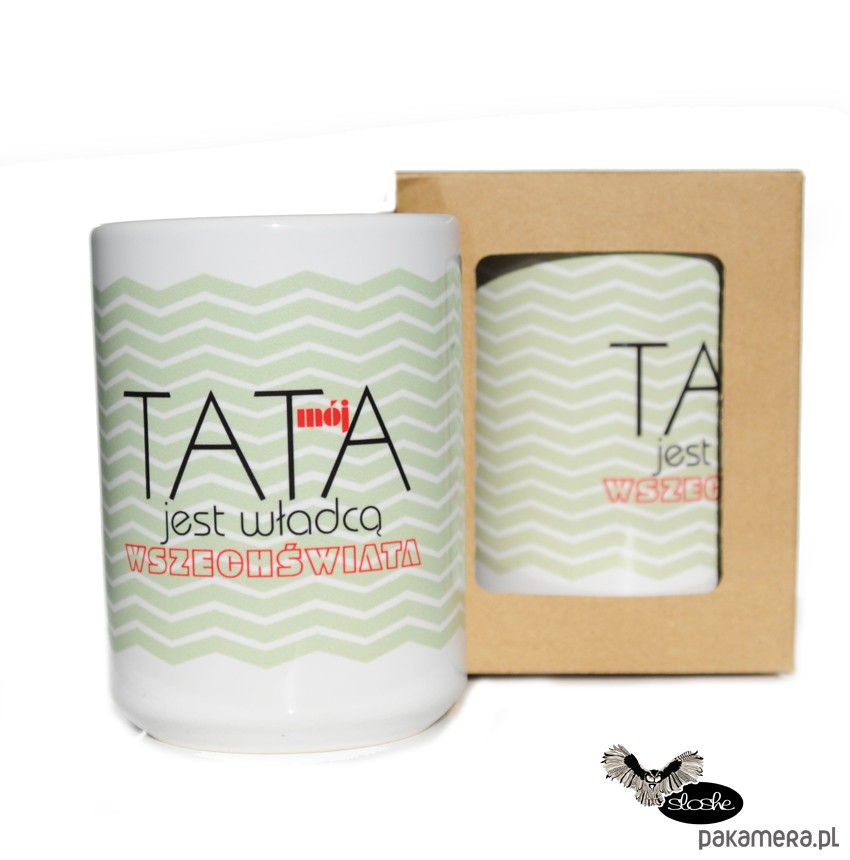 Duży, bardzo oryginalny, pięknie się prezentujący na stole czy biurku kubek ceramiczny z napisem "Mój Tata jest władcą wszechświata" w kolorystyce czarno zielonej. Kubek o pojemności 450ml bardzo dobrze się trzyma w ręce, wygodny i pojemny z ciekawym napisem na przodzie. Kubek jest najwyższej jakości, może być zmywany w zmywarkach lub ręcznie. Kubek jest opakowany w eleganckie papierowe pudełko przyozdobione naszym sowim logiem, idealne na prezent dla bliskiej Ci osoby. Oferta obejmuje: - kubek o pojemności 450ml (wysokość:11,7cm, średnica: 8,5cm) - pudełko z sowim logiem na górze. Copyright SLOSHE All Right Reserved.