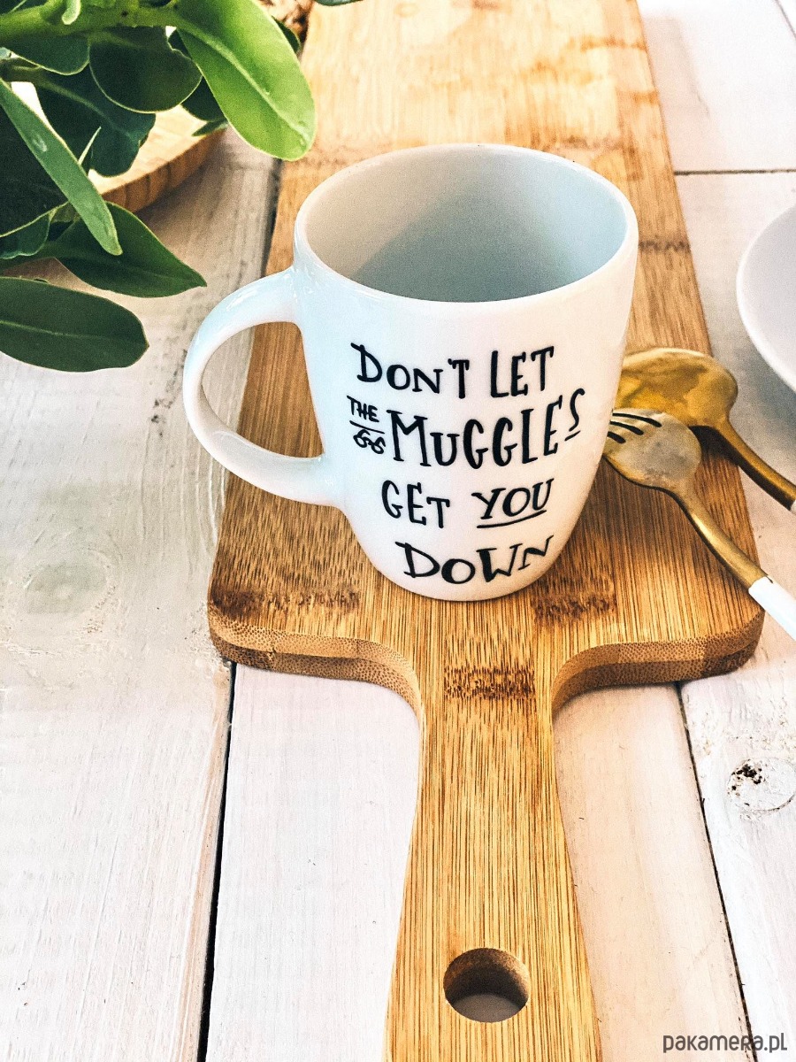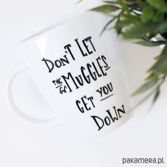 Ręcznie malowany kubek DON'T LET THE MUGGLES GET YOU DOWN to idealny pomysł na prezent, szczególnie dla fanów Harrego Pottera. Zapewniamy, że wywoła uśmiech na twarzy obdarowanej osoby.