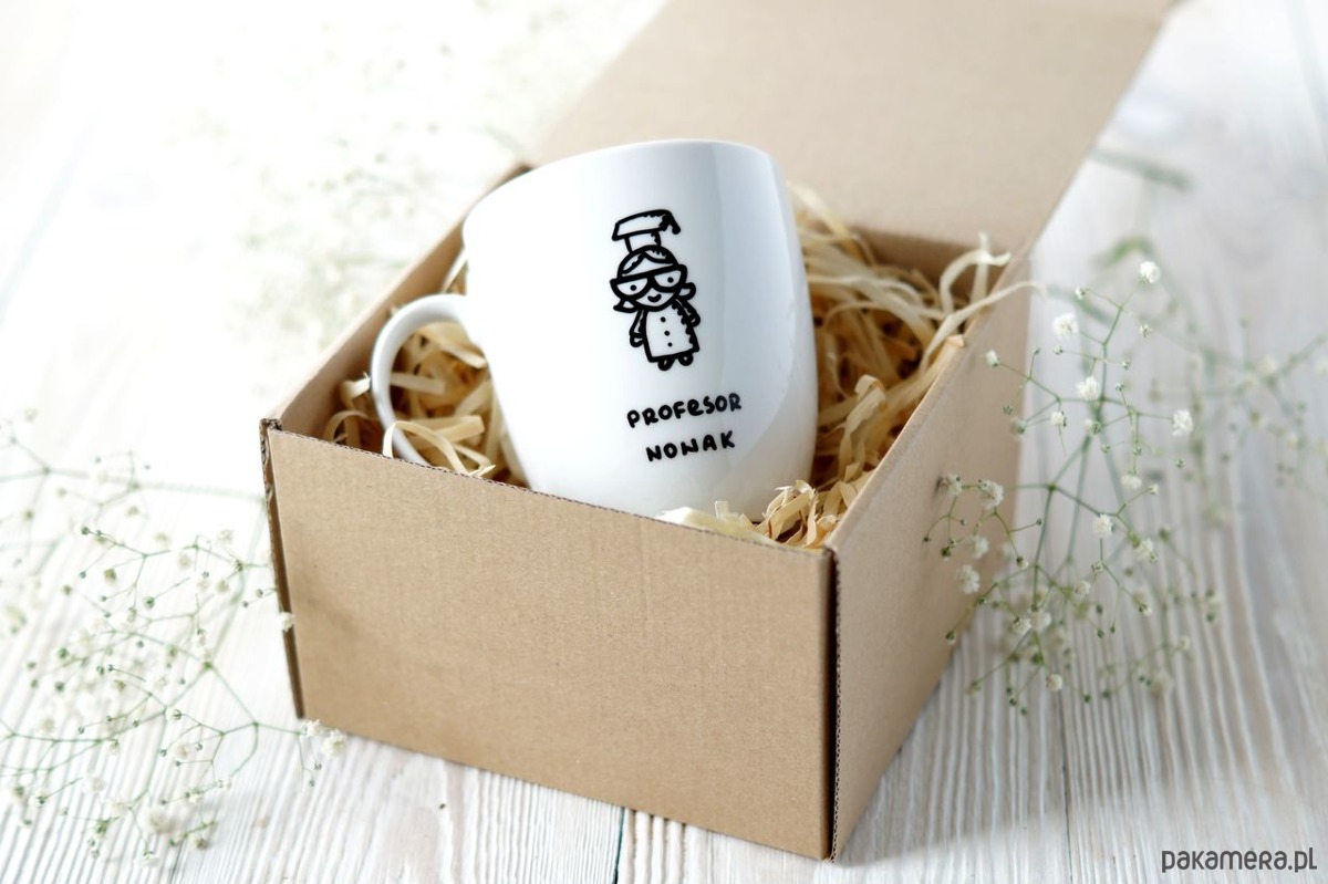 Kubek wysyłamy estetycznie zapakowany, gotowy na prezent. Do każdego dołączamy saszetkę herbaty owocowej.