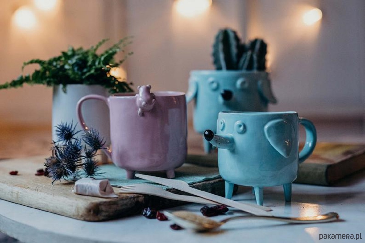 Kubek na każdym etapie został wykonany ręcznie z wysokiej jakości gliny i szkliw nadających się do kontaktu z żywnością i dwukrotnie wypalony. Każdy jest niepowtarzalny w swoich detalach przez co może delikatnie różnić się od widocznego na zdjęciu. Sygnowany na spodzie.