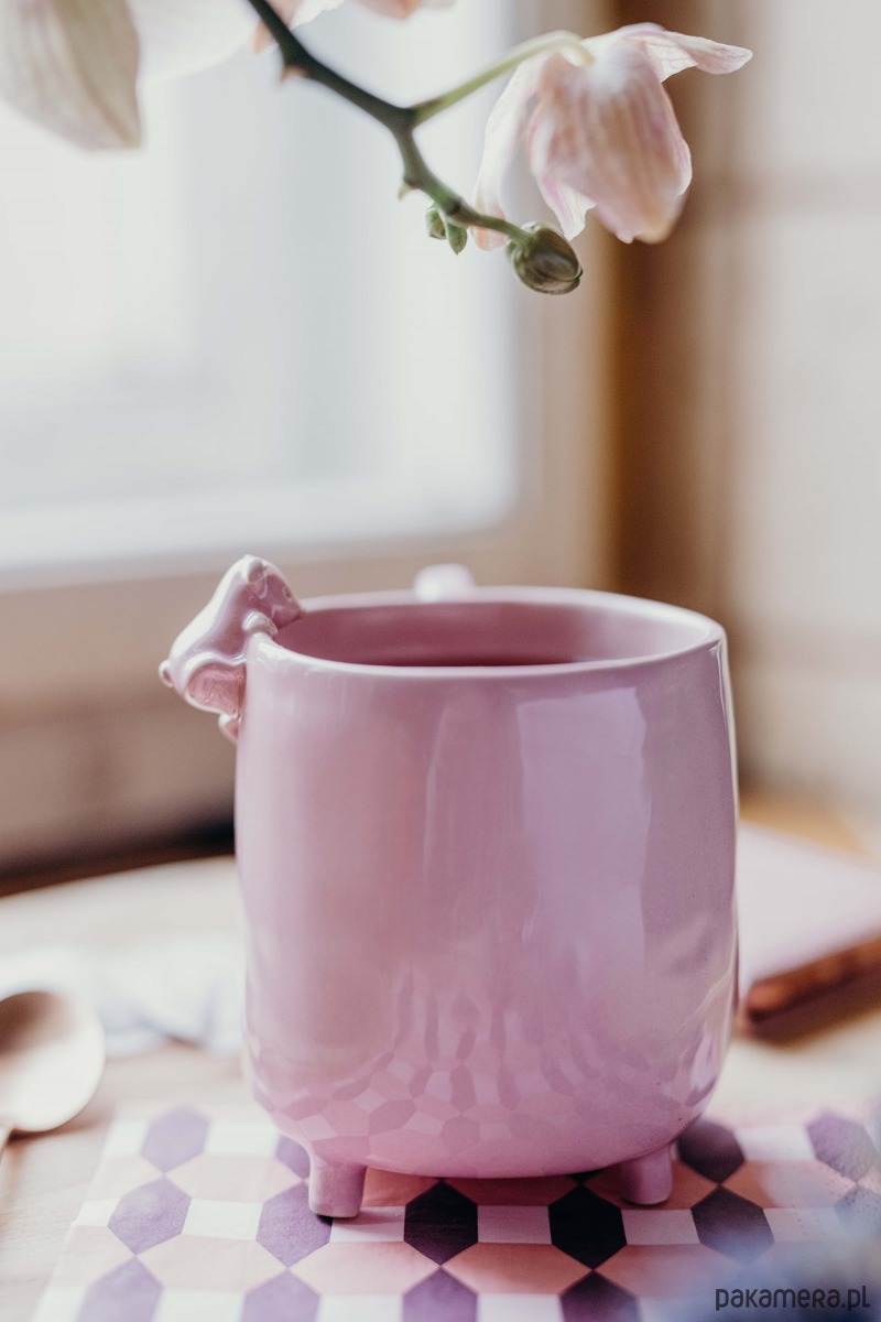 Przedmiotem sprzedaży jest jeden kubek w kolorze różowym.