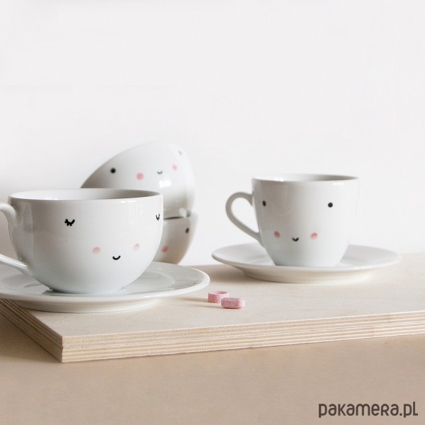Jestem dużą uśmiechniętą filiżanką z rumieńcem.