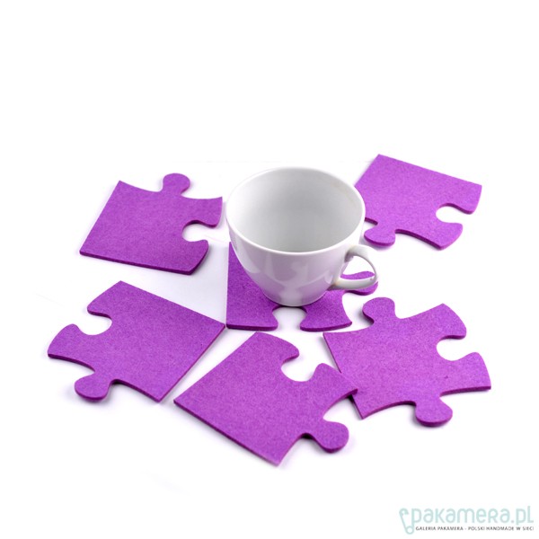 rewelacyjne filcowe podkładki pod kubki, szklani, filiżanki, kieliszki, pucharki, kufle itp. itd. ;) kolor: fiolet/fuksja sztuk 6, wielkości: 11,5x12,5 cm. 14,5x11 cm. 12,5x10,5 cm. polecam !!! zapakowane idealnie na prezencik ;) prać ręcznie w temp. 30 stopni.