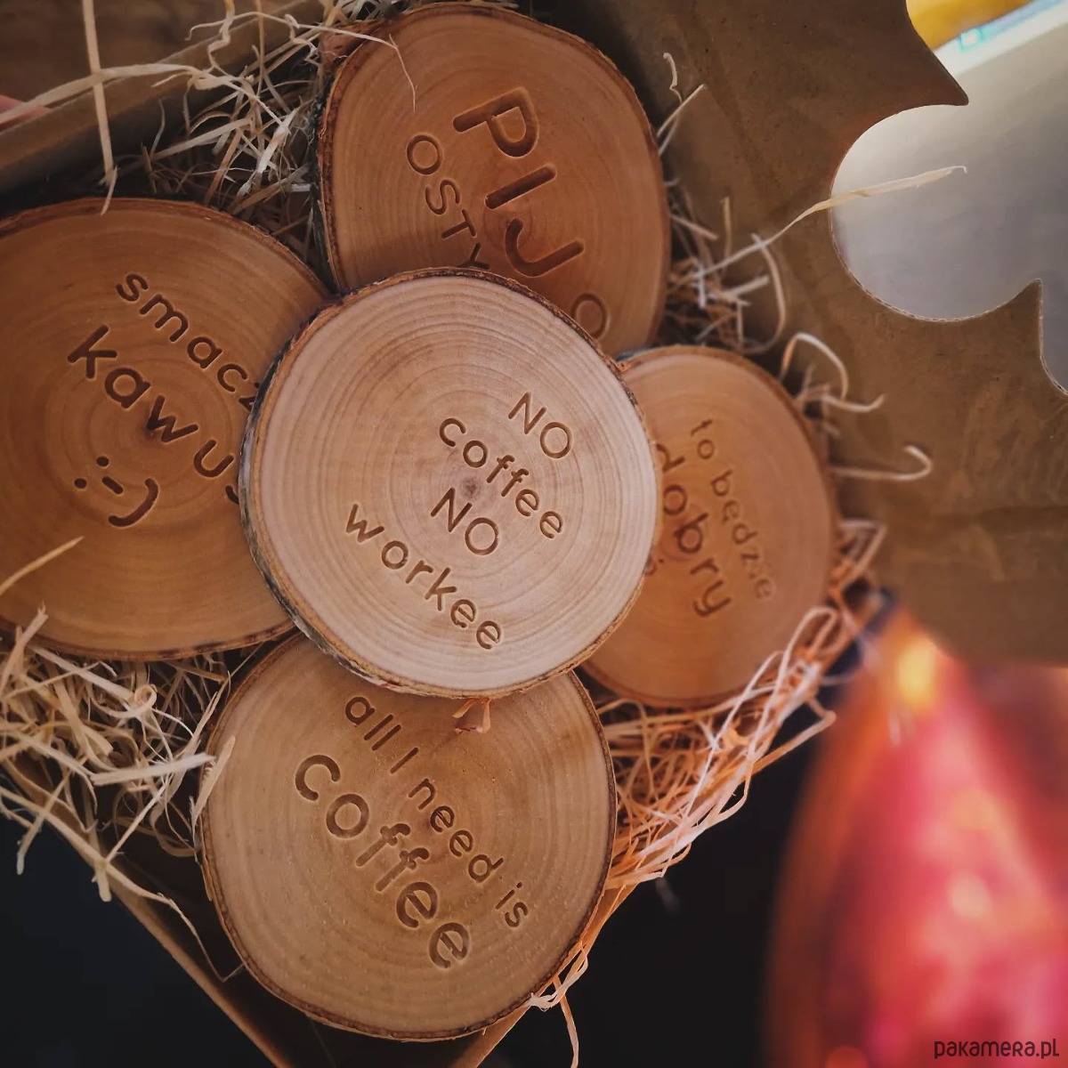 Podkładka pod kubek wykonana z plastra brzozy, z grawerem. Naturalna, naturalnie piękna!