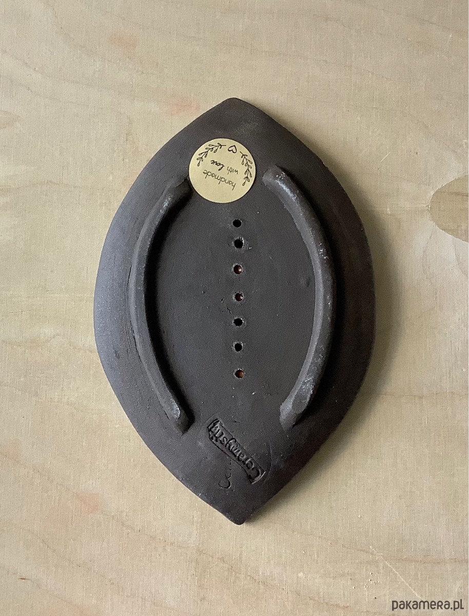 Na spodzie gliniane stopki. W mydelniczce są dziurki umożliwiające odpływanie wody.