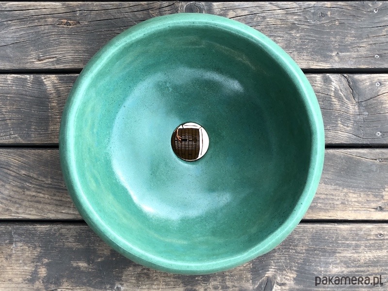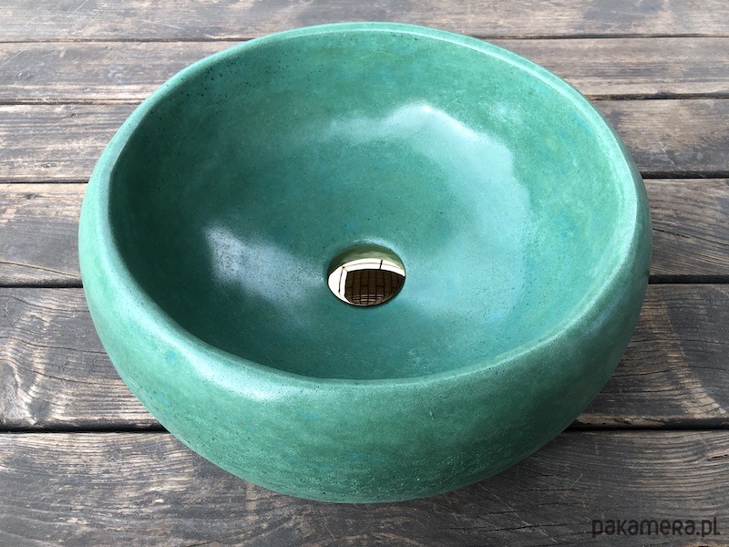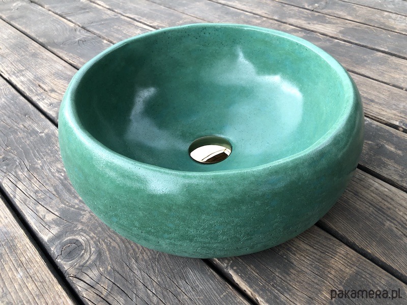 Umywalka betonowa, nablatowa, butelkowa zieleń, wykonana ręcznie, funkcjonalna i trwała. Zaimpregnowana i wodoodporna.