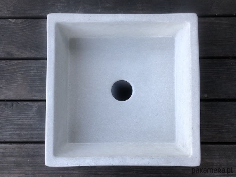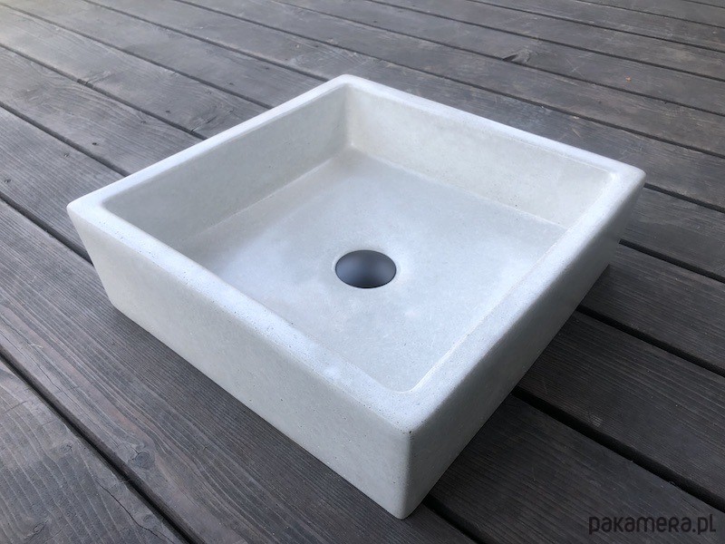Umywalka kwadratowa,biała, betonowa, wykonana ręcznie, funkcjonalna i trwała. Zaimpregnowana i wodoodporna.