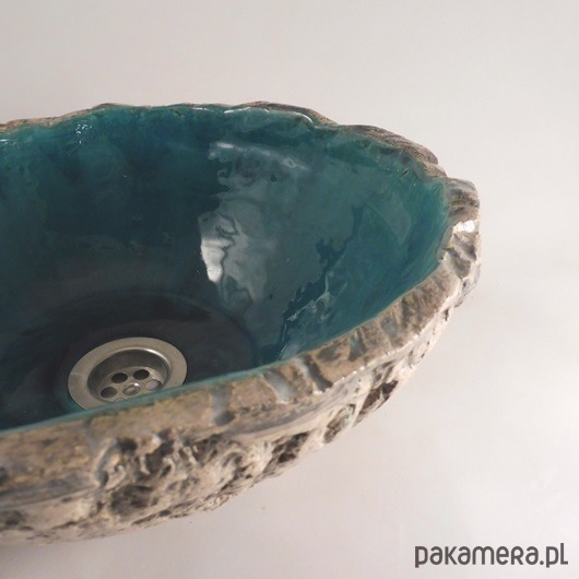 Umywalka ceramiczna, nablatowa, ręcznie formowana i szkliwiona, średnica 36 cm, wysokość 17 cm, polecam.