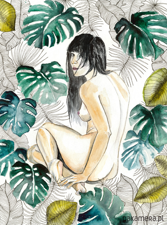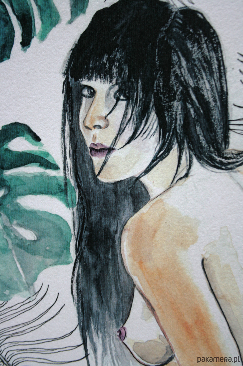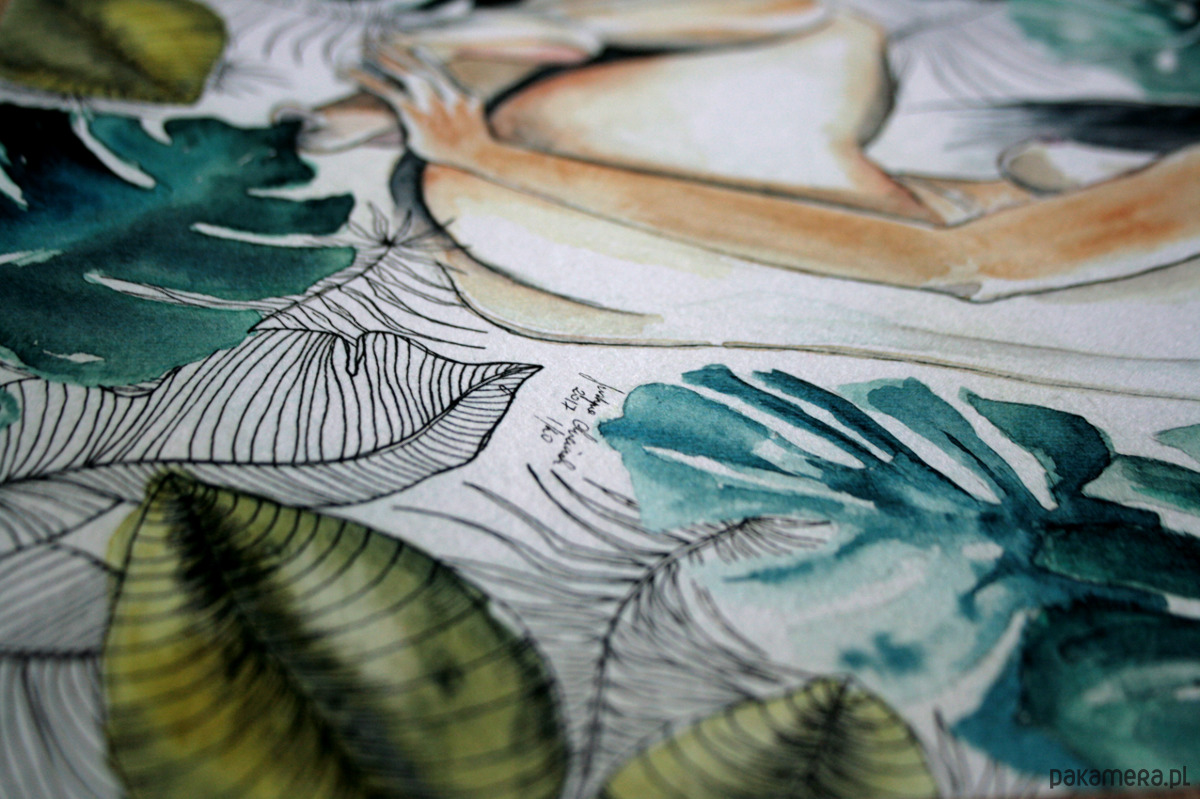 Oryginalna praca została namalowana farbami akwarelowymi z dodatkiem rysunku cienkopisem.
