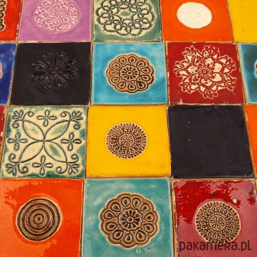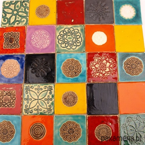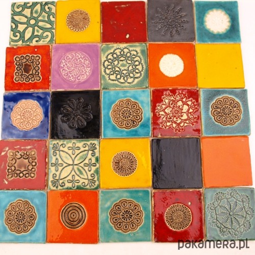 zestaw 25 kafli ceramicznych. Wymiary: ok.10x10cm. Kafle ulepione ręcznie, nie idealnie równe, są odporne na wilgoć, ścieralność, wysokie i niskie temperatury. Na zamówienie wykonuję większe ilości. Polecam serdecznie