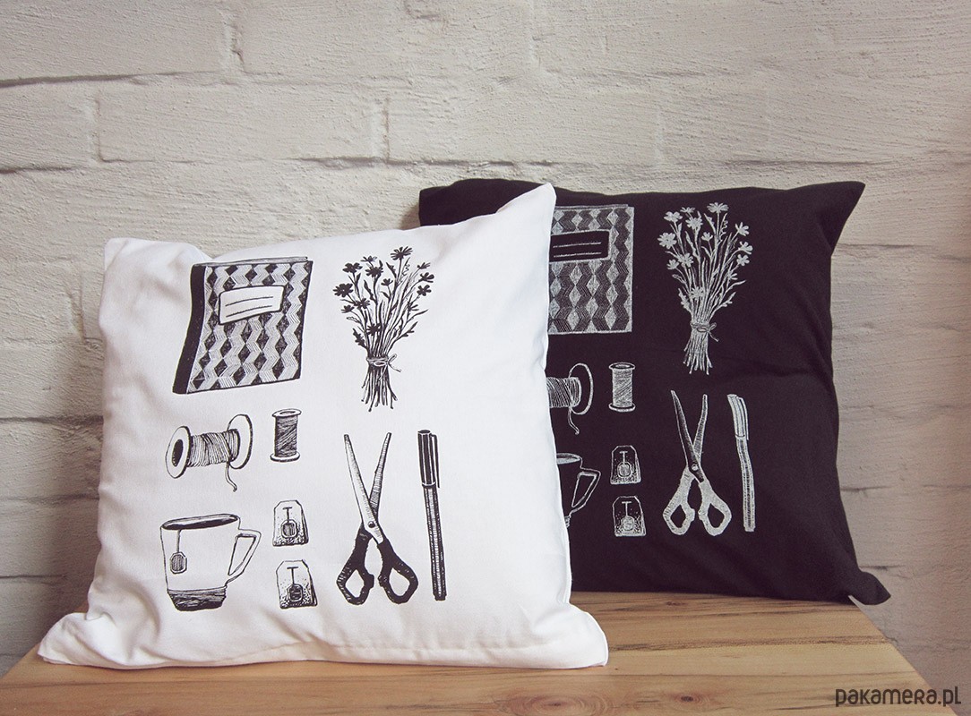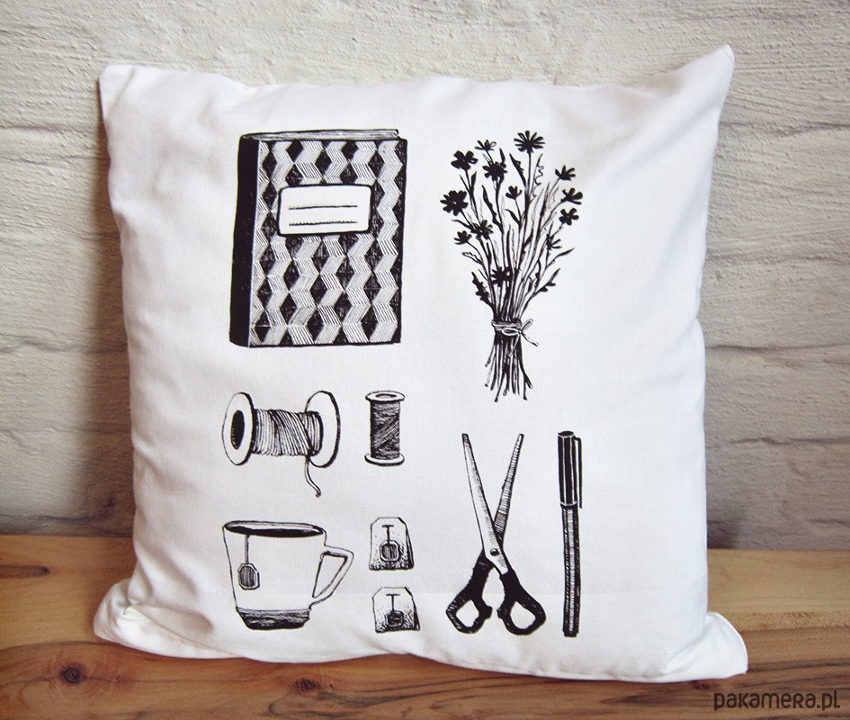 Poduszka z wyjątkową, autorską grafiką. Wymiary: ok. 40x40cm Zapięcie na zamek Bawełna z nadrukiem wykonanym techniką sitodruku