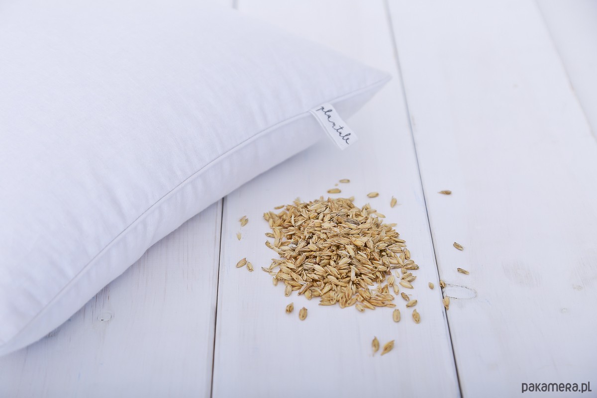 Roślinna poduszka do spania wypełniona ekologiczną łuską płaskurki oraz odrobiną eko lawendy.