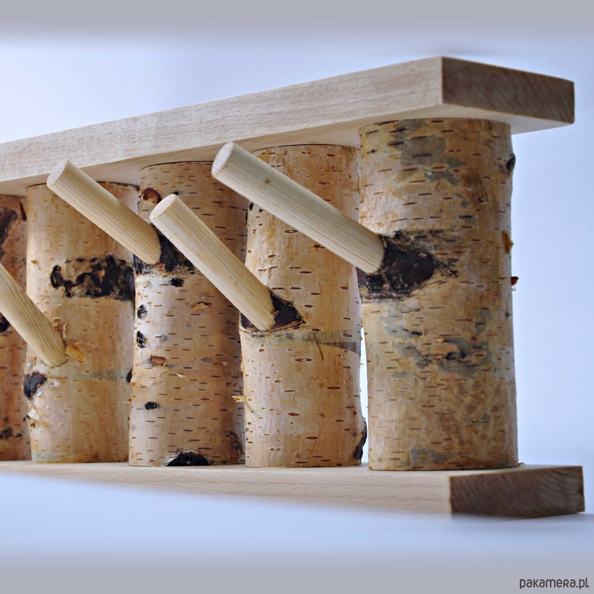 Drewniany wieszak na ubrania - pieńki, gałązki