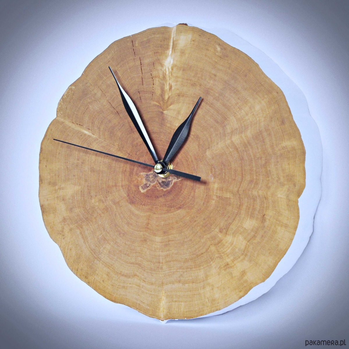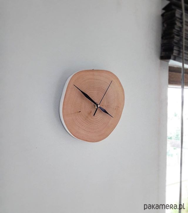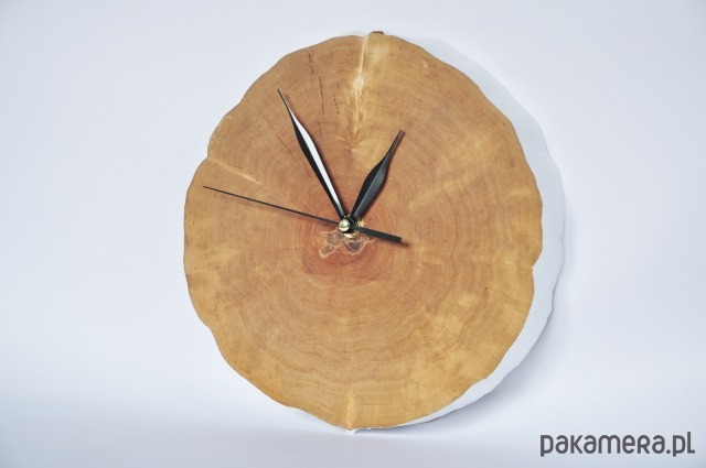 Z racji użytego materiału do wykonania zegara - litego, naturalnego drewna - każdy z plastrów może nieco odbiegać od tego, przedstawionego na zdjęciu. Z czasem mogą pojawić się na nim także nieznaczne pęknięcia - jest to wynikiem naturalnego procesu reagowania drewna na warunki atmosferyczne.