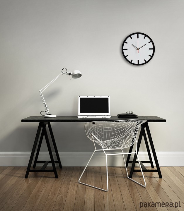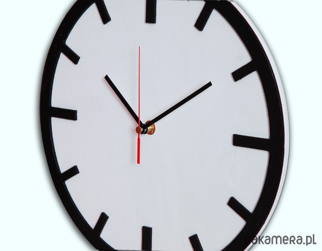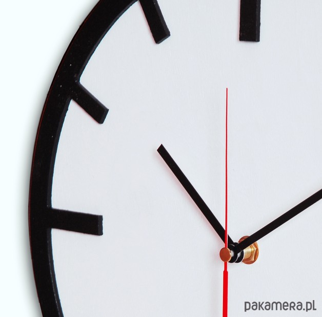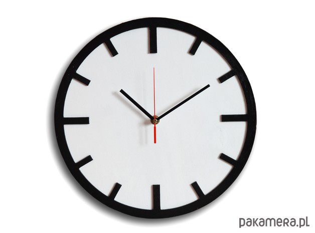 Ten zegar jest ponadczasowy. Bo nie ma nic bardziej naturalnego niż ten prosty, drewniany zegar, z wypukłymi "minutnikami". Przygotowany jest w skandynawskim, nowoczesnym stylu ale równie dobrze odnajdzie się w tradycyjnej kuchni czy biurze. Kolory: biały i czarny. Dzięki specjalnej konstrukcji tyłu, gdzie zamontowany jest zaczep do zawieszenia, zegar efektownie "odstaje" od ściany, co nadaje mu dodatkowej głębi.