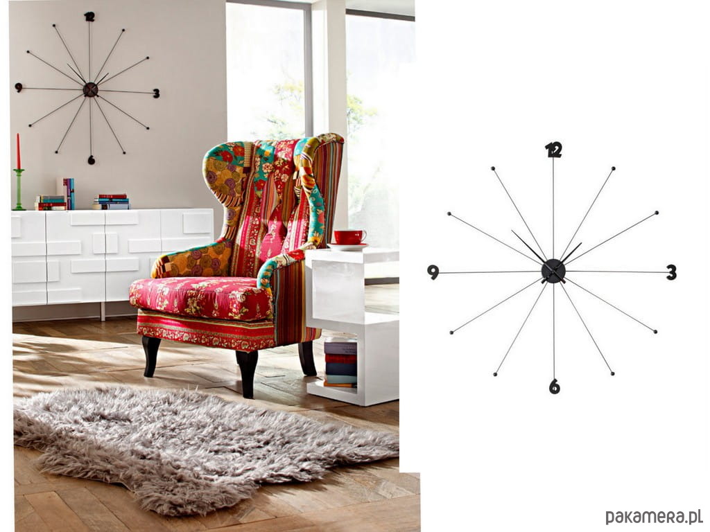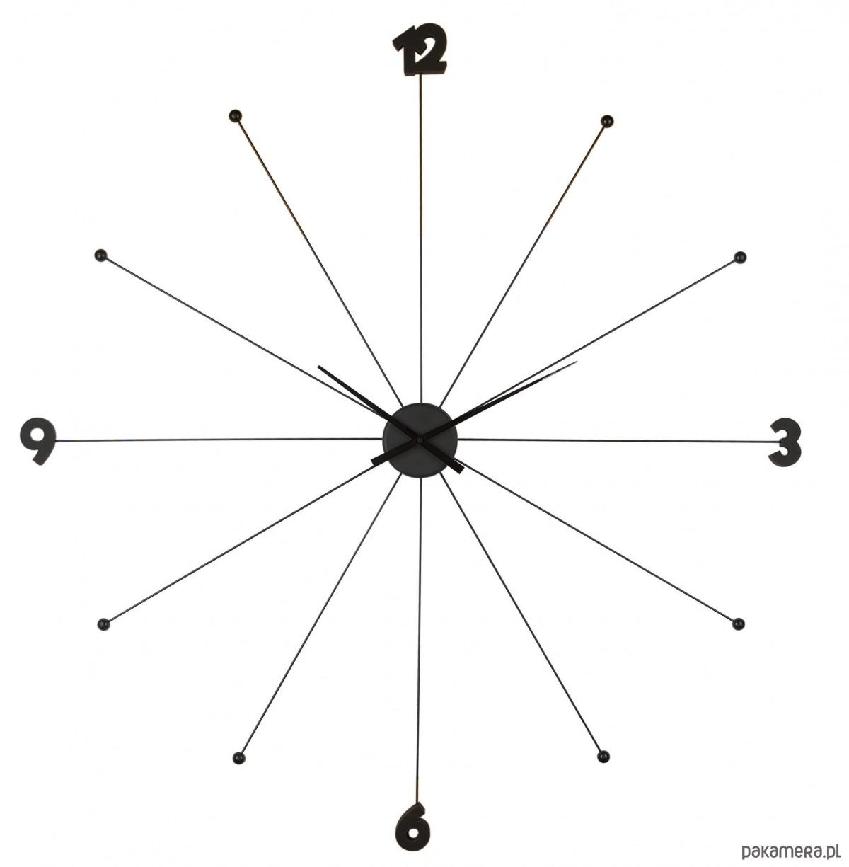 Nowoczesny, duży, ekstrawagancki zegar ścienny w kolorze nasyconej czerni. Wyrazisty a jednocześnie lekki, będzie oryginalną ozdobą mieszkania, biura czy klubu.