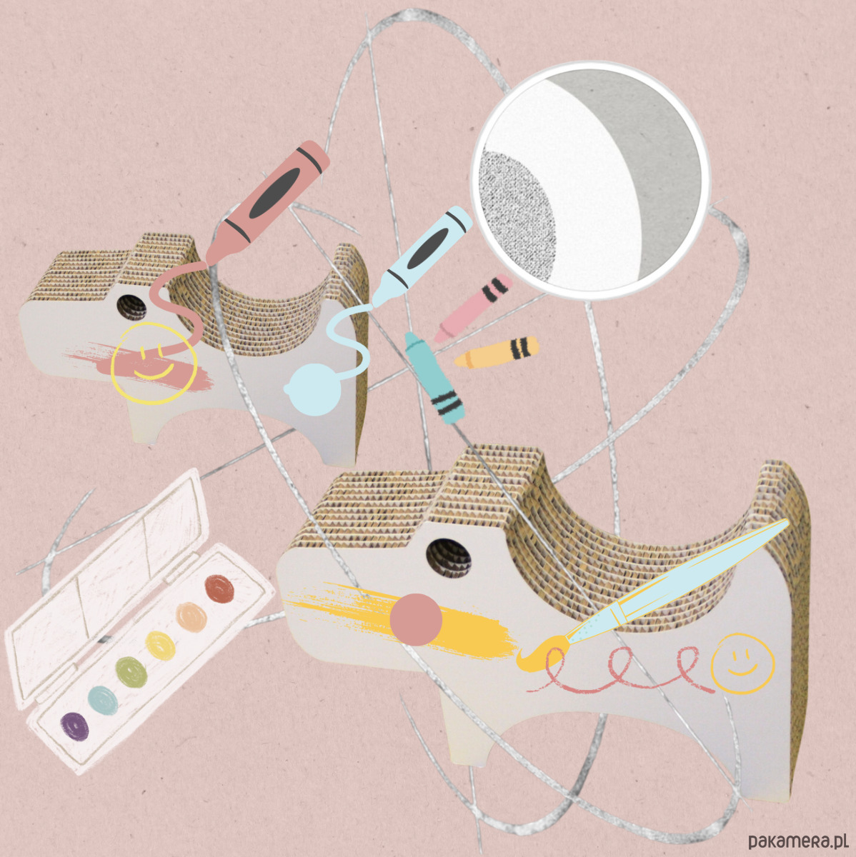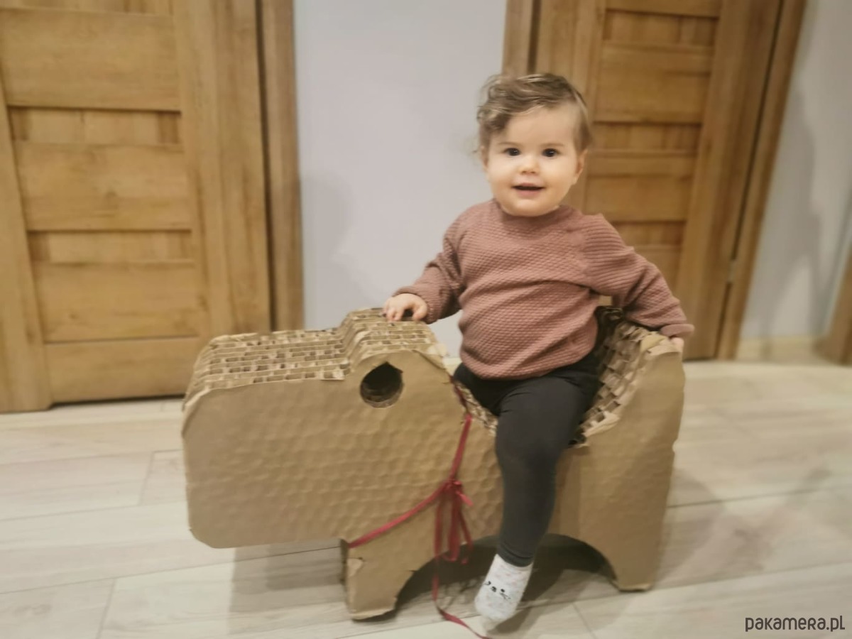 Tekturowa przestrzeń zabawki doggy może być ozdobiona kreowana przez same dzieci.