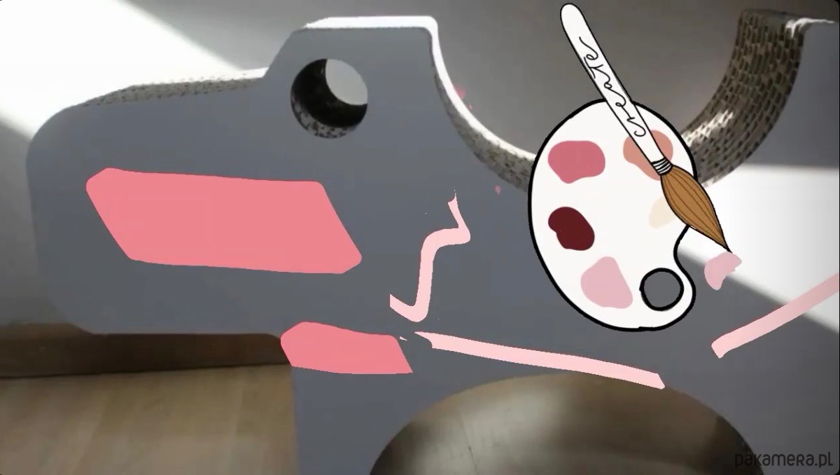 Tekturowa przestrzeń zabawki doggy może być ozdobiona kreowana przez same dzieci.
