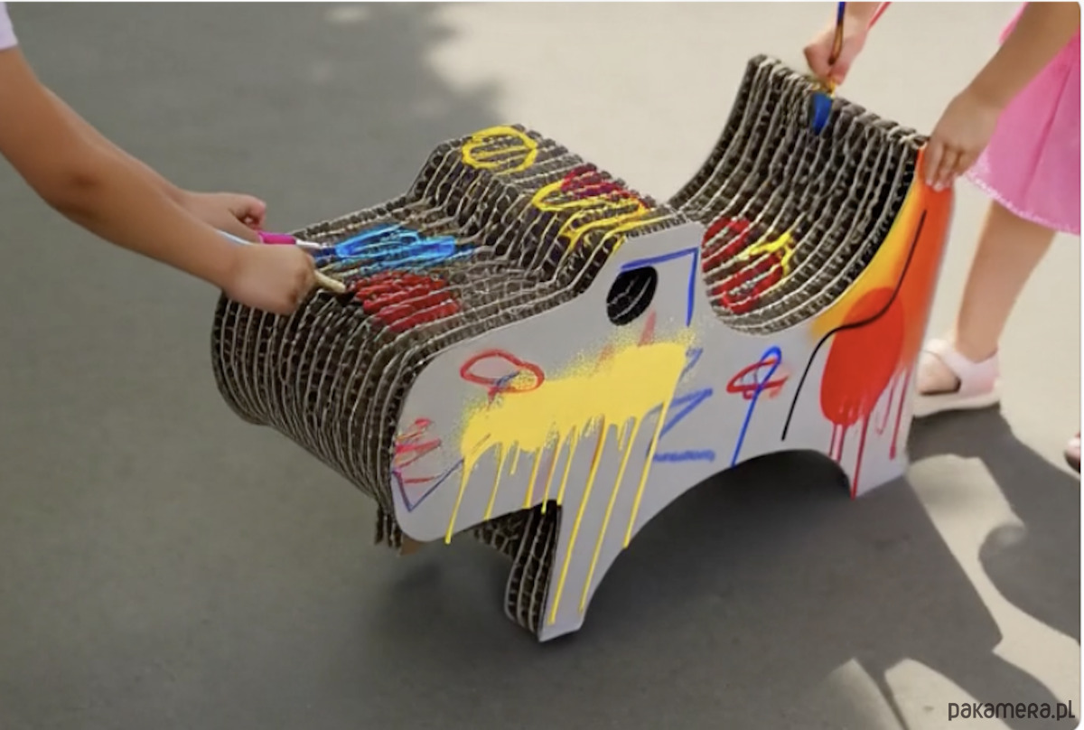 Tekturowa przestrzeń zabawki doggy może być ozdobiona kreowana przez same dzieci.