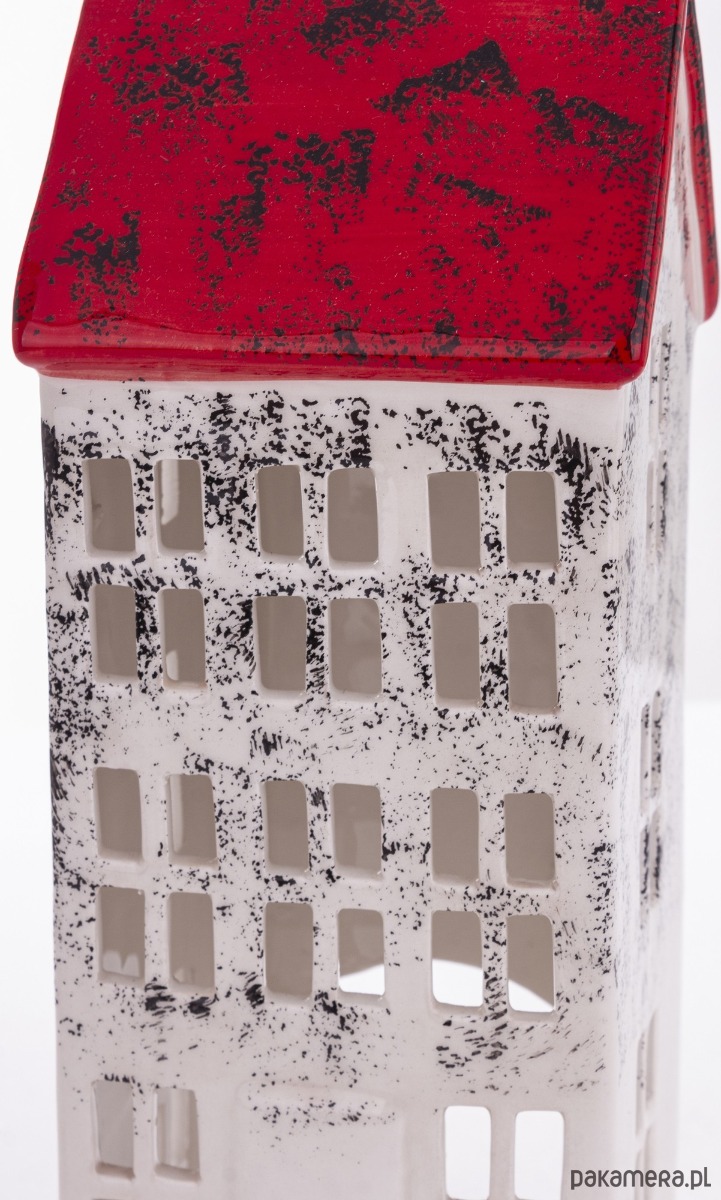 Ceramiczny domek dekoracyjny, który doda niepowtarzalnego uroku każdemu wnętrzu. Jego minimalistyczna forma sprawia, że doskonale wpasuje się w różnorodne aranżacje, od nowoczesnych po klasyczne. Charakterystyczny czerwony dach na białym budynku oraz 2 kominy przyciąga wzrok. Wykonany z wysokiej jakości ceramiki charakteryzuje się nie tylko estetyką, ale także trwałością, co pozwala cieszyć się jego pięknem przez długi czas. Specjalnie jest postarzany i nie jednolity w swoim kolorycie.