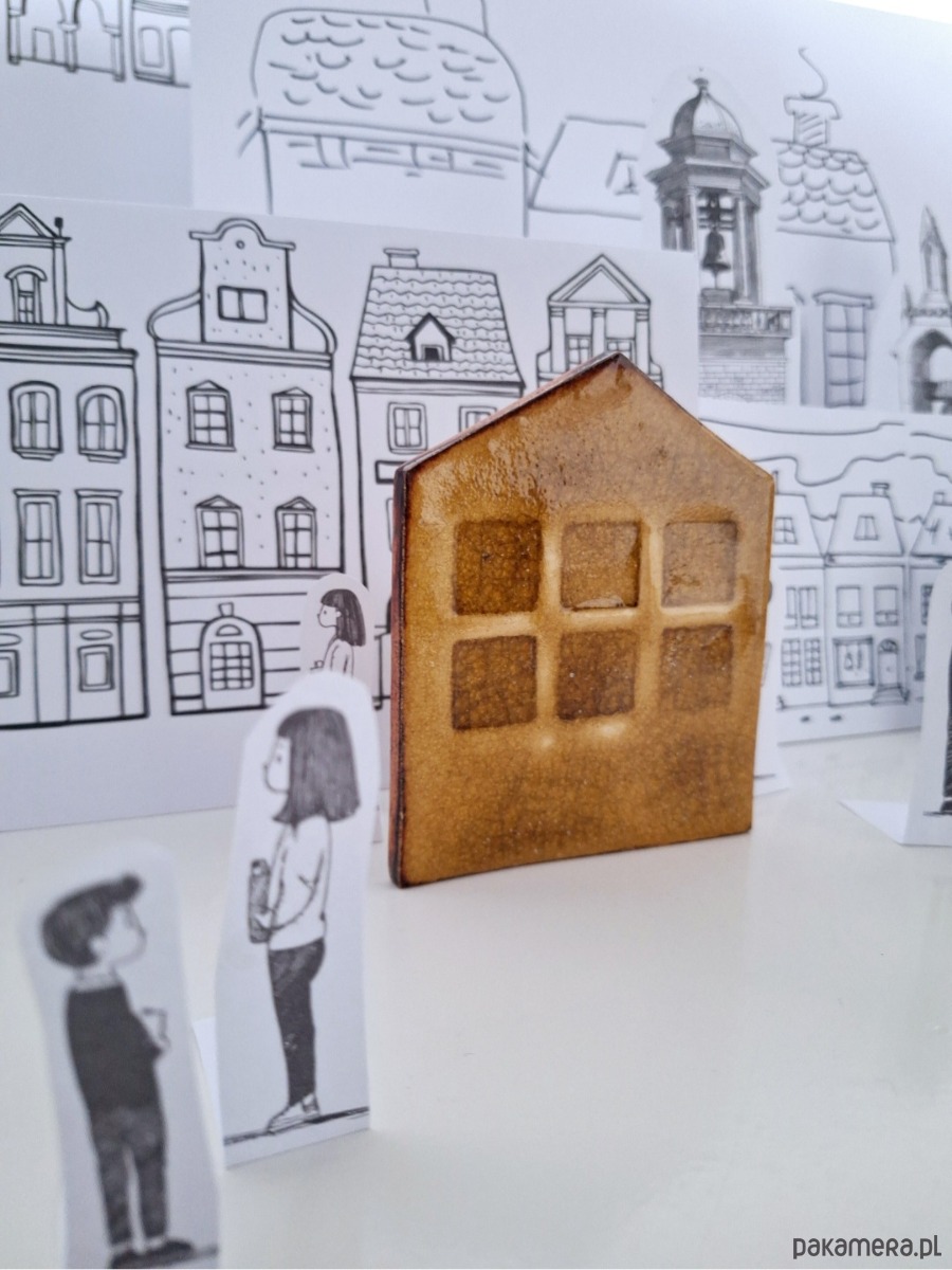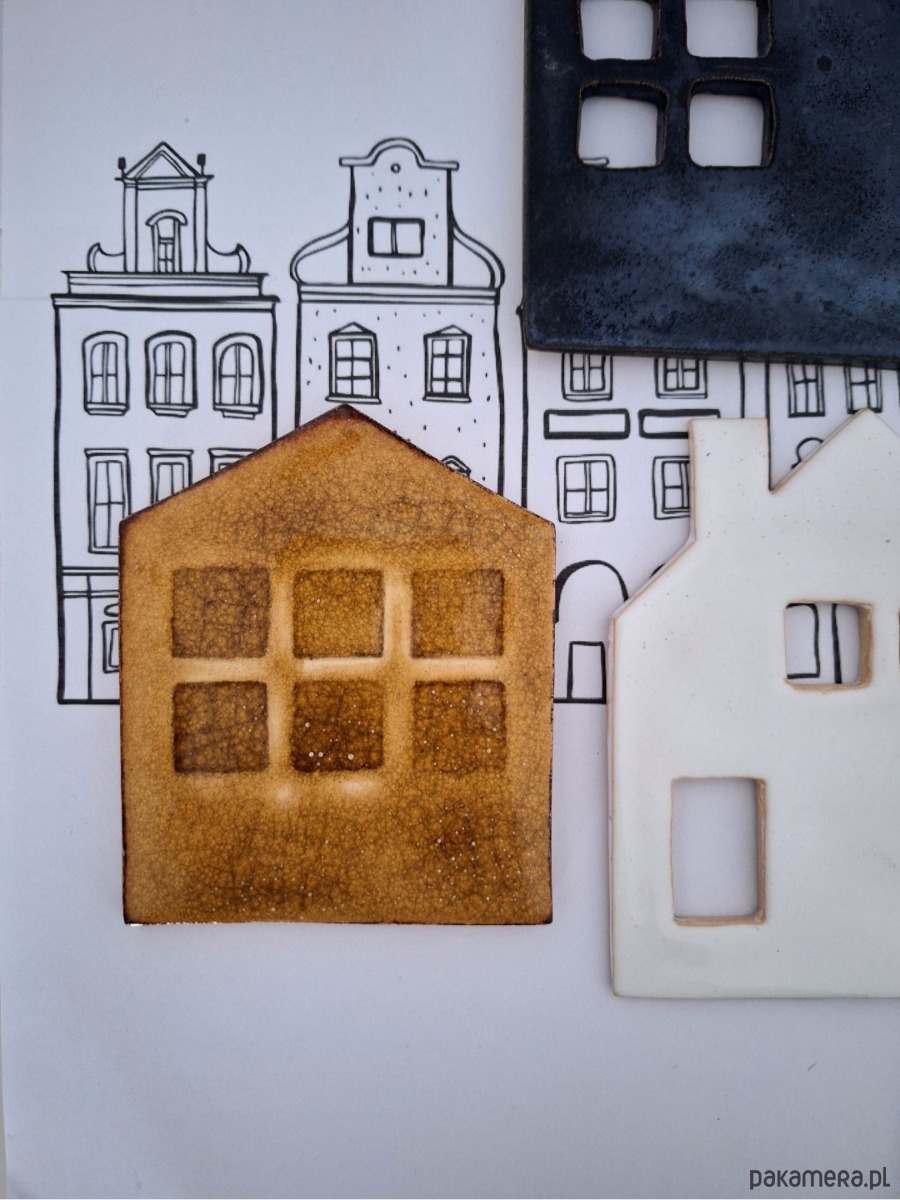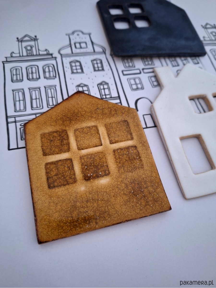 Ceramiczna dekoracja w kształcie domku. Kafel ręcznie formowany i szkliwiony w brązowy błyszczącym kolorze. Szkliwio z pięknie uwidocznioną strukturą przypominającą bursztyn. Dekor może posłużyć podstawka na biżuterię, świece, klucze, okulary, kadzidła i palo santo czy jako dekoracja ścienna/ w zestawie metalowy haczyk.