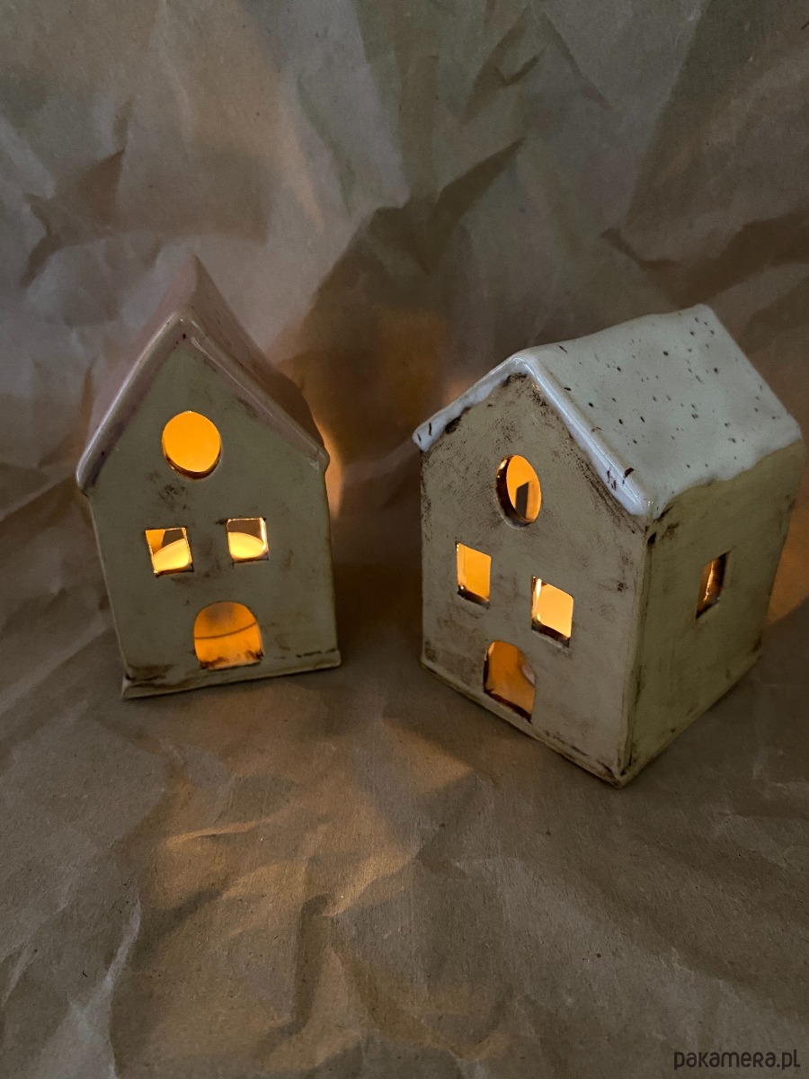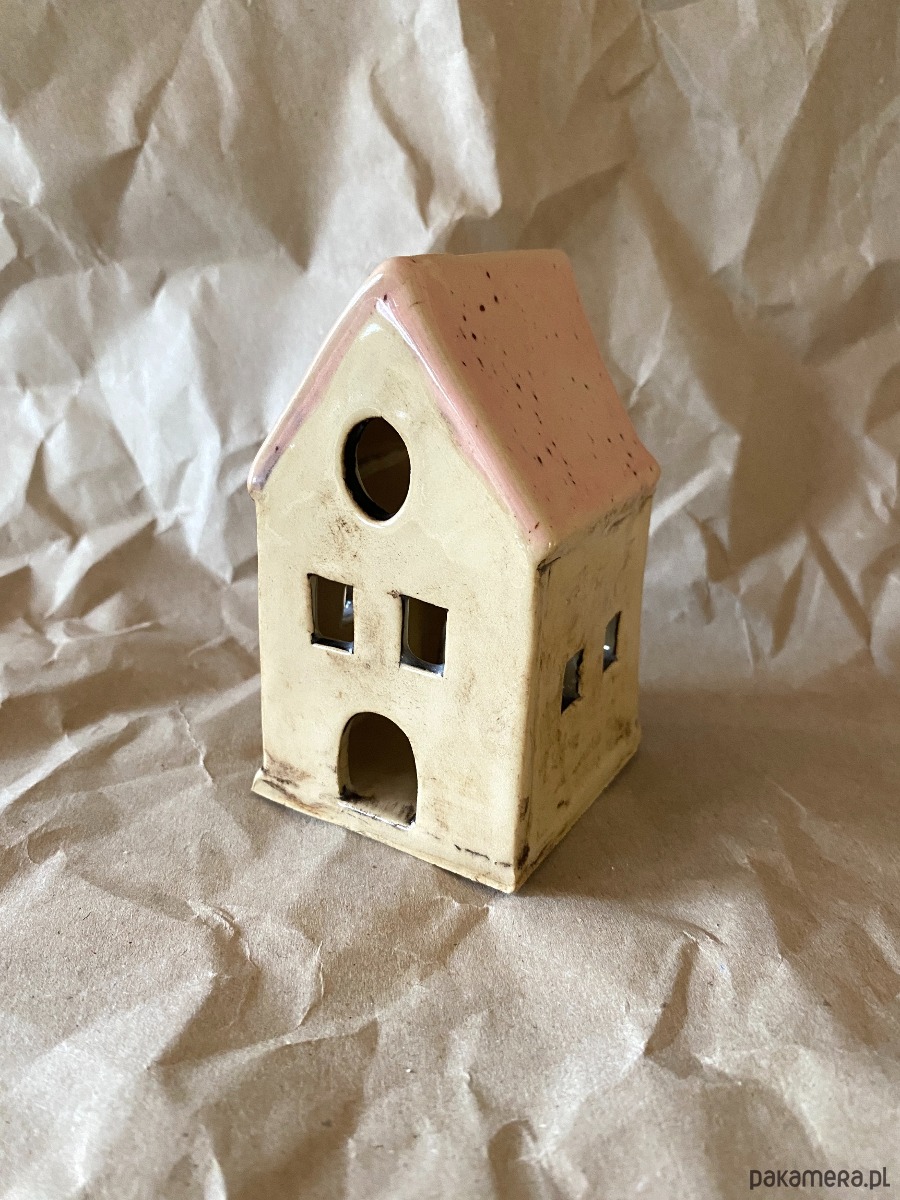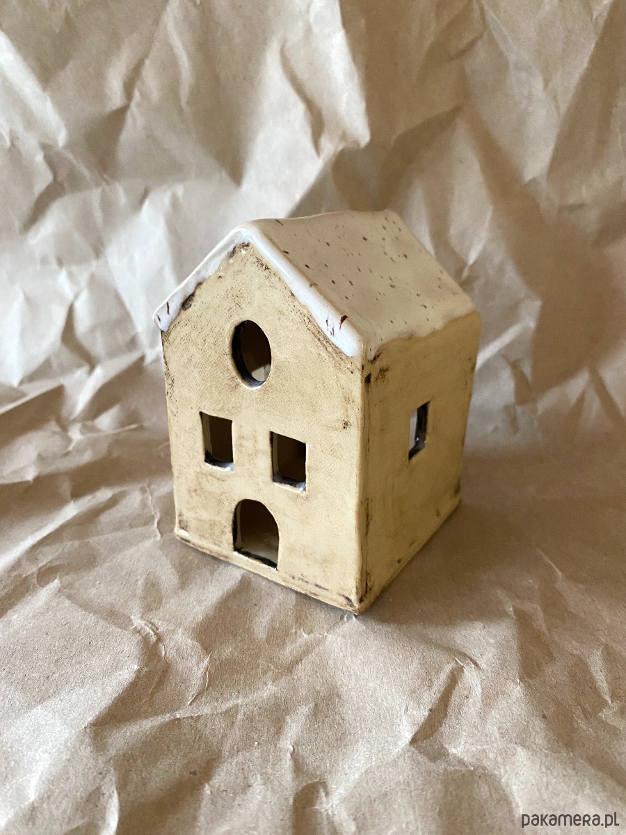 Domek ceramiczny na świeczkę, dekoracja z miejscem na świeczkę typu T-Light albo LED.