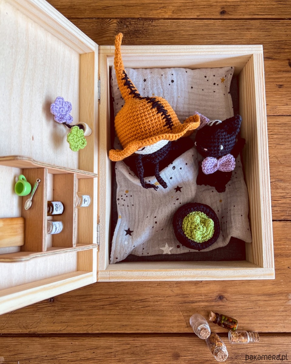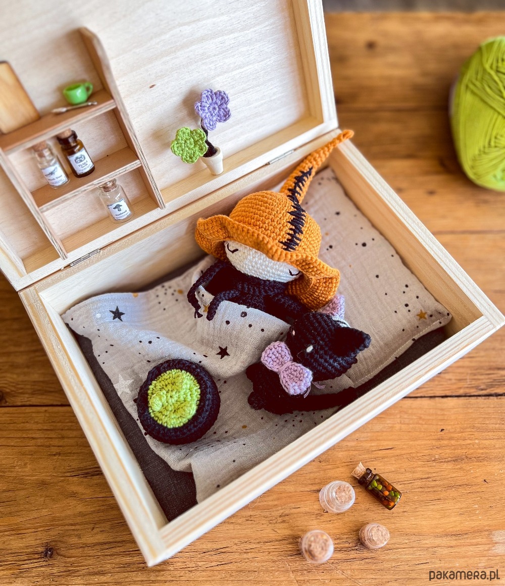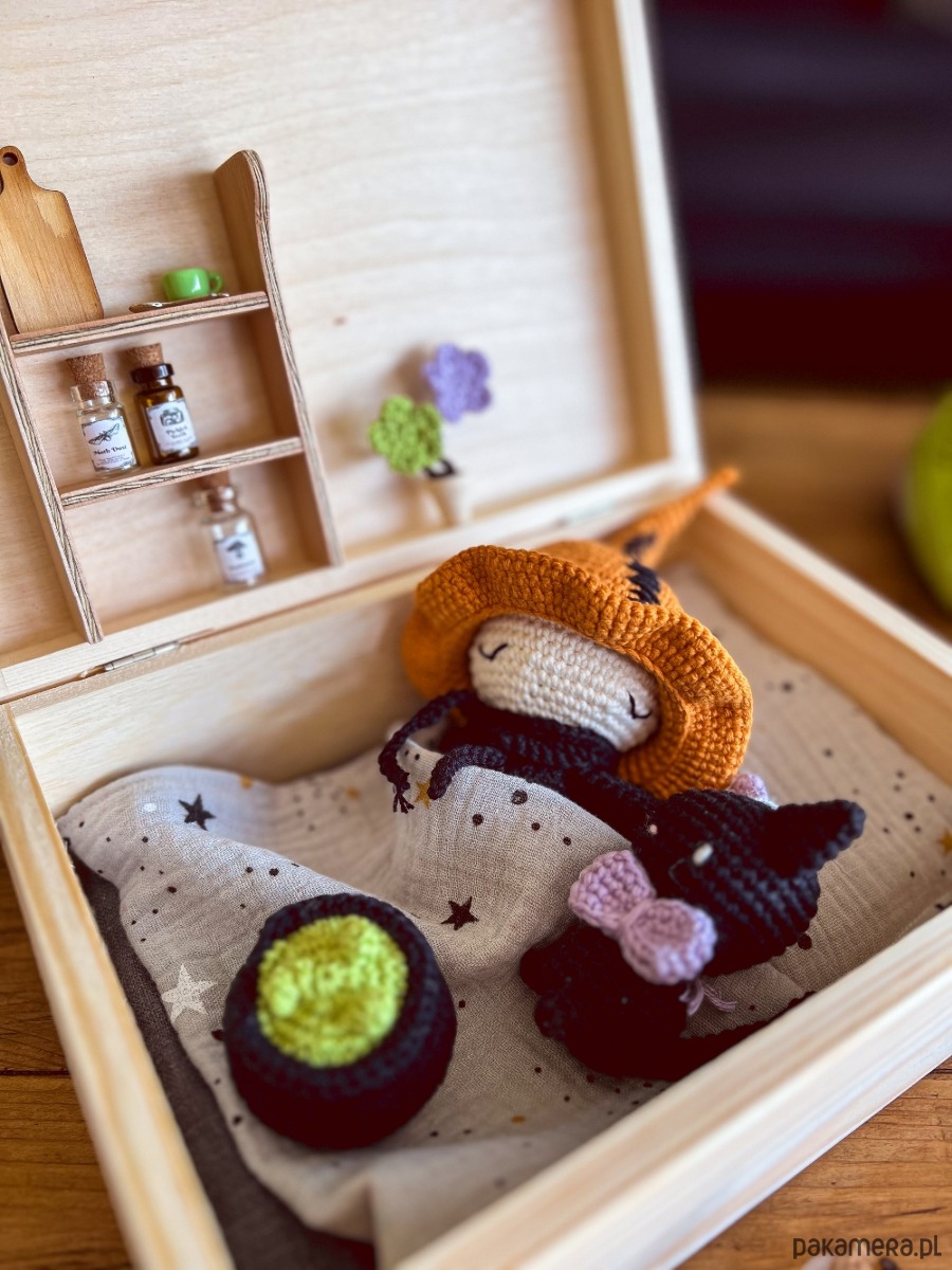 Szukasz wyjątkowego prezentu dla swojego dziecka lub bliskiej osoby? Nasze drewniane pudełko z szydełkową wiedźmą i jej przyjacielem kotem to doskonały wybór, który zachwyci zarówno dzieci, jak i dorosłych! To nie tylko piękna ozdoba, ale i pełen magii oraz uroku zestaw, który sprawi radość każdemu.