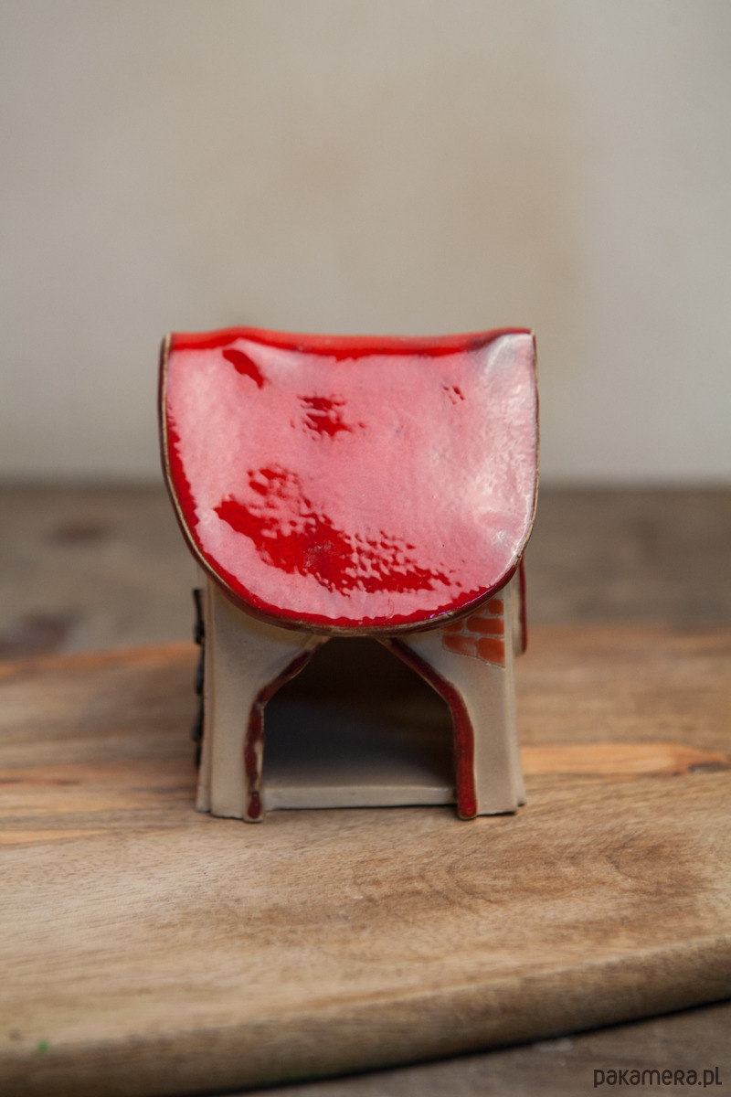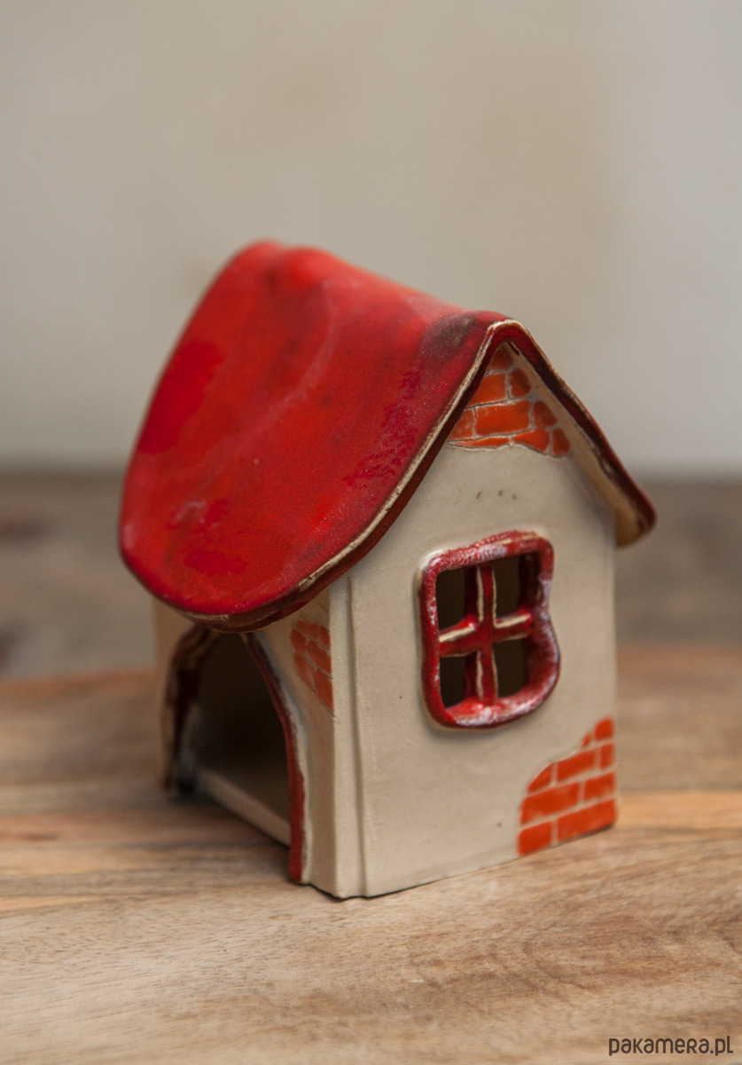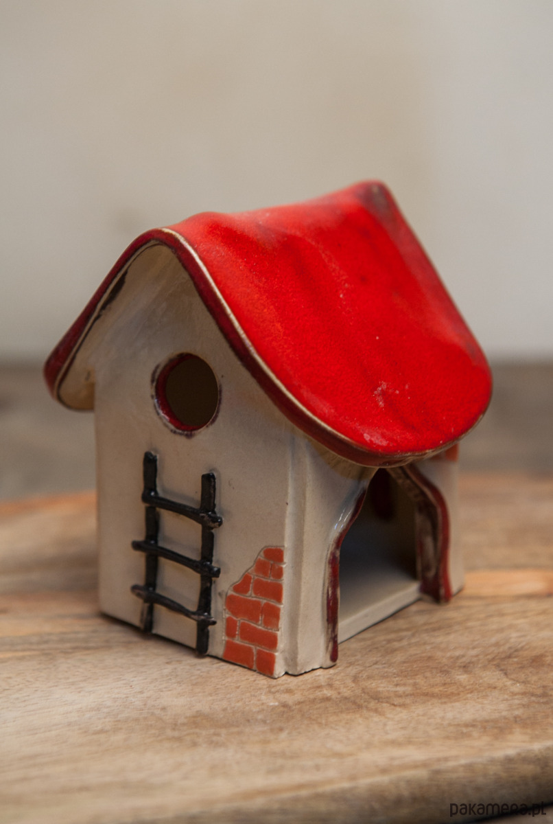 Ręcznie robiony i szkliwiony domek na tealighty.