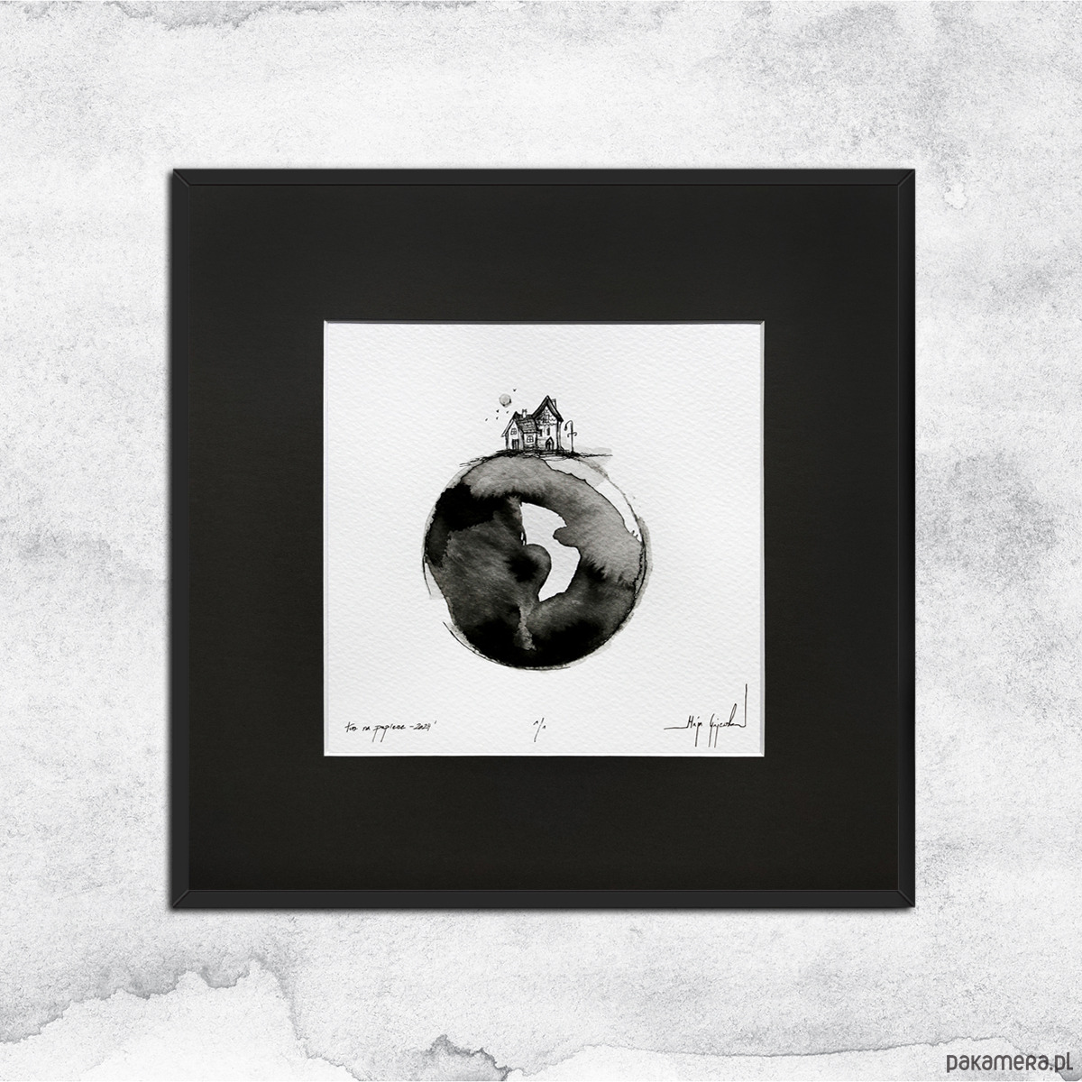 Domek - UNIKAT - oprawiony tusz na papierze (08)