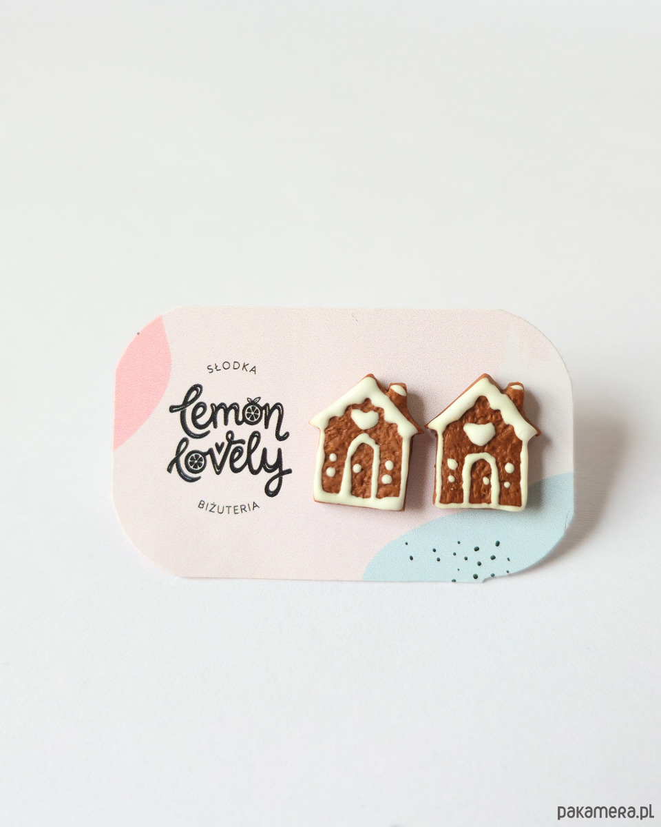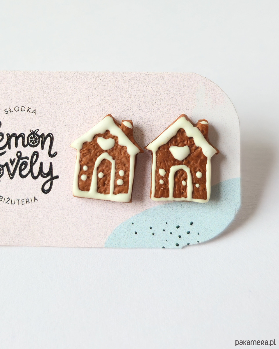 Domek z piernika kolczyki sztyfty srebro lub stal