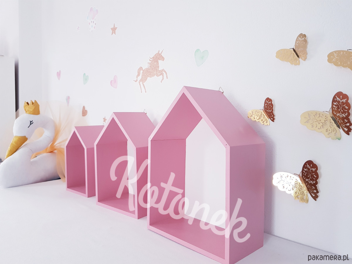 Półki domki to doskonały dodatek do każdego pomieszczenia. Idealnie sprawdzą się w pokoju dziecięcym. Dzięki szerokiej gammie kolorów wkomponują się w styl każdego wnętrza, a wzornik, który ciągle aktualizujemy