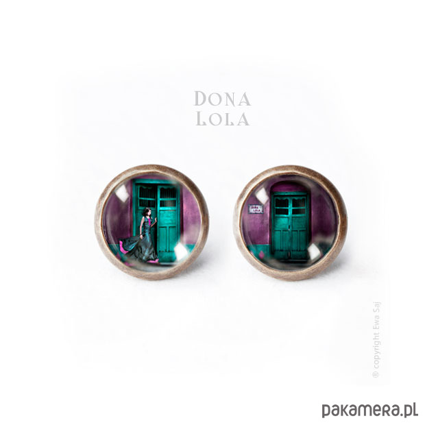 Malutkie, pełne czaru, oryginalne, zaczarowane, romantyczne kolczyki-wkręty . Miniaturki moich grafik zmniejszone do wymiaru 10 mm Ukryłam je niczym maleńki sekret pod szklaną kopułą organicznego szkiełka. Sztyft w kolorze antycznego złota z idealnie dopasowaną zatyczką. Średnica kolczyka 12 mm.