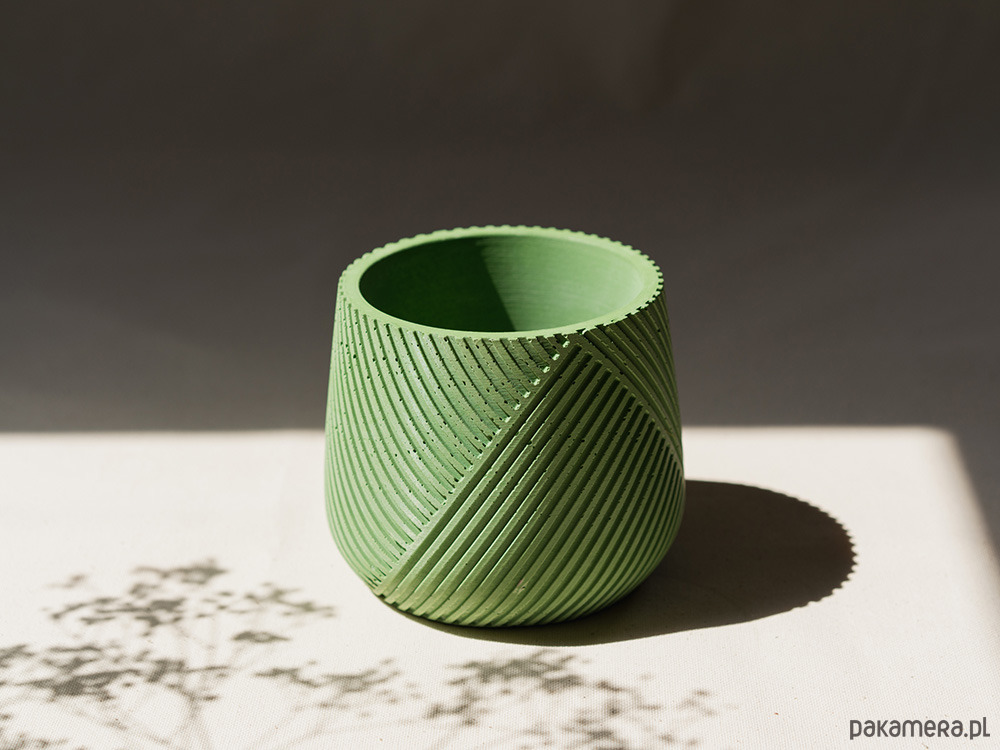 - ręcznie wykonana, ze względu na wykorzystany materiał oraz fakt, że jest to ręcznie robiony produkt, donice różnią się od siebie, mogą mieć delikatne, naturalne przebarwienia i dziurki po pęcherzykach powietrza