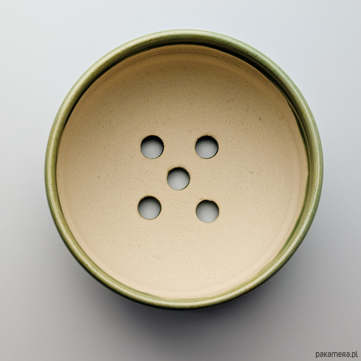 Donica została wytoczona na kole garncarskim i dwukrotnie wypalona w wysokiej temperaturze. Nie jest szkliwiona w środku.