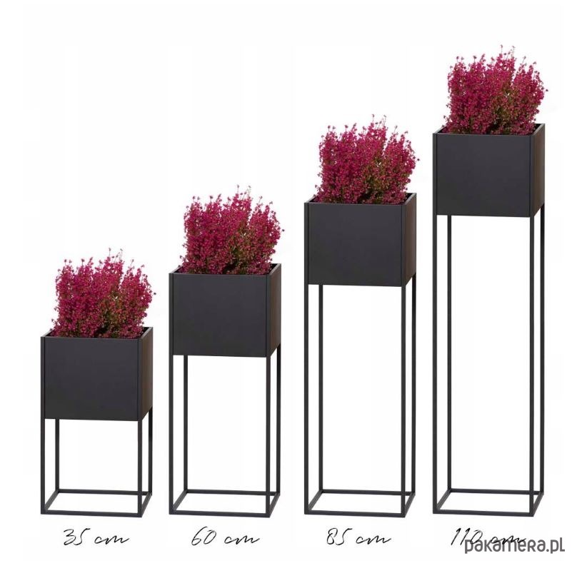 Nowoczesny kwietnik metalowy z donicą, wykonany został ze stali malowanej proszkowo, trwałej i odpornej. Donica metalowa wykonana jest niezwykle precyzyjnie: najwyższa jakość spawów dokładnie wyszlifowanych i wypolerowanych oraz idealne zgrzanie donicy z nóżkami to znak charakterystyczny tego wyrobu.