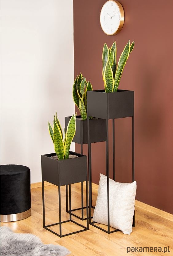 Stojąca doniczka, inaczej stojak na donice dzięki surowości materiału jakim jest stal oraz delikatnym liniom zastosowanych profili doskonale sprawdzi się w aranżacji minimalistycznych i nowoczesnych wnętrz.