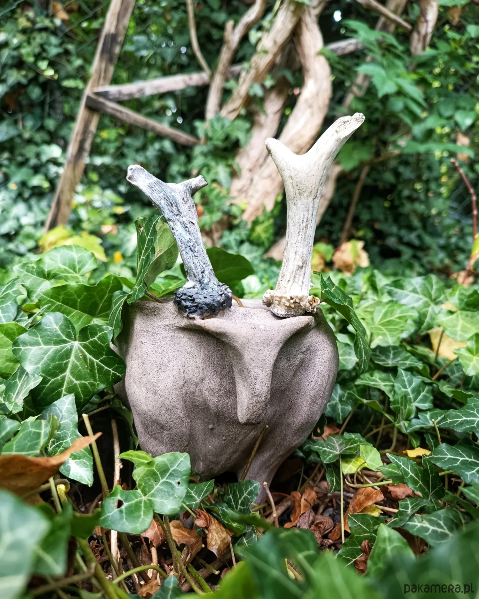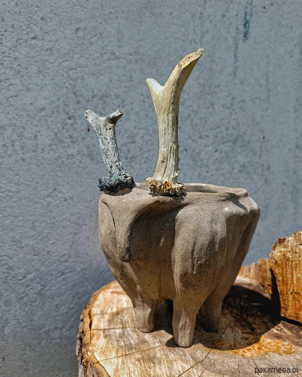 Donica z prawdziwym rogiem młodego jelenia.