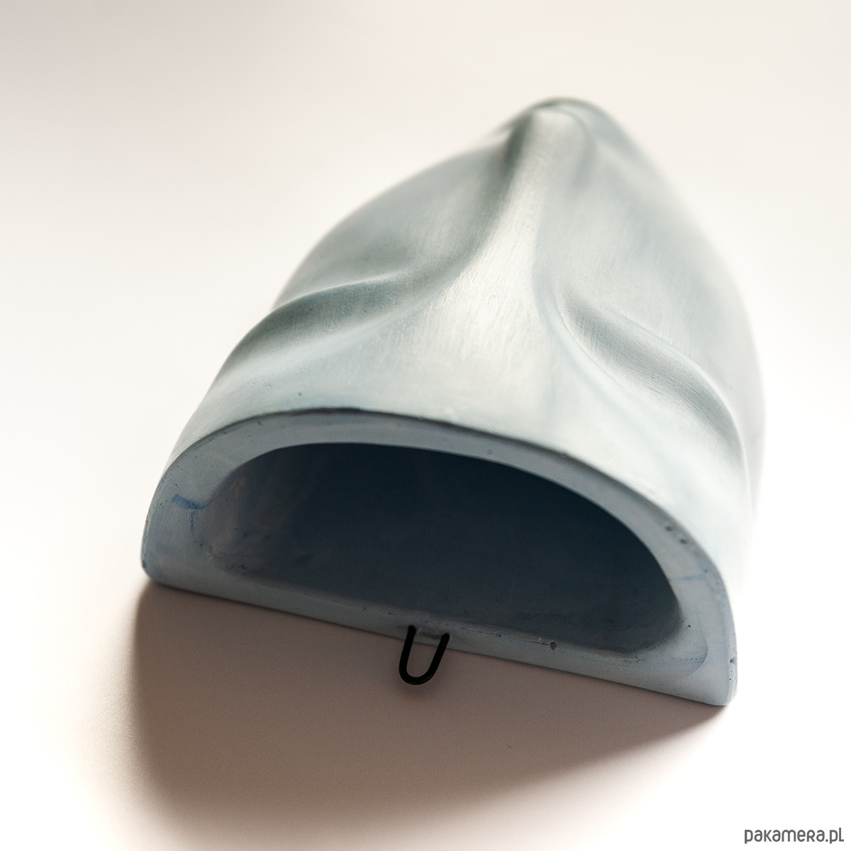 Doniczka na ścianę w kolorze błękitnym baby blue, matowe wykończenie. Zabezpieczona wewnątrz, można wsypać ziemię i posadzić roślinę. Do powieszenia wystarczy gwóźdź, haczyk jest częścią doniczki. Jeśli masz wątpliwości skontaktuj się z nami.