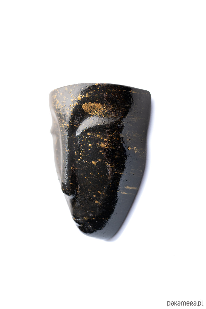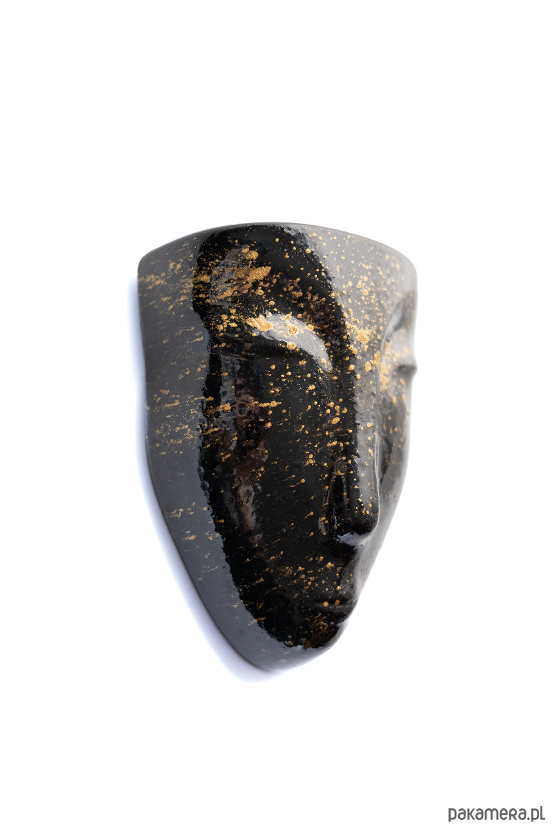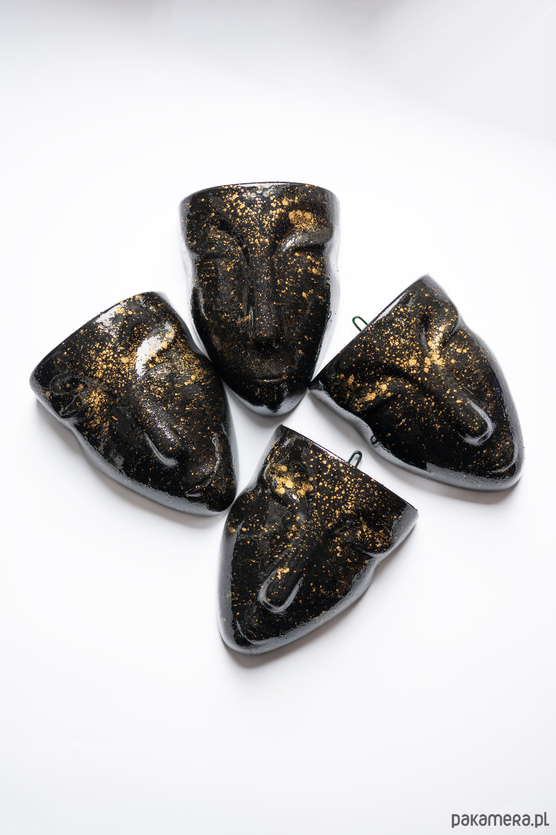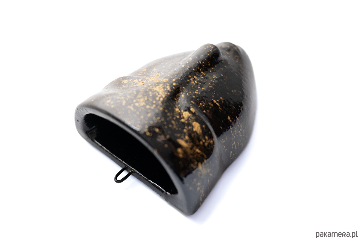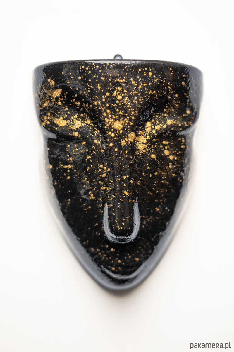 Doniczka na ścianę w kolorze czarnym z drobinkami złota, wykończenie błyszczące. Do powieszenia wystarczy gwóźdź, haczyk jest częścią maski. Jeśli masz wątpliwości skontaktuj się z nami.