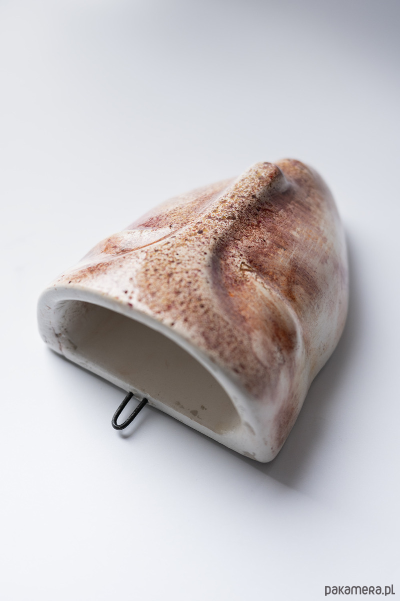 Wykonana i wykończona ręcznie w Polsce. Każda sztuka posiada swoje indywidualne cechy. Dostępna tylko jedna sztuka. Unikat. Głowa może być doniczką lub dekoracyjną maską na Twojej ścianie.