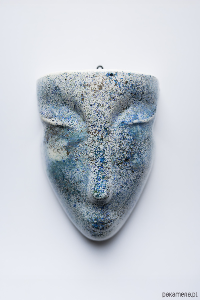 Doniczka głowa na ścianę w niebieskie mazy i kropki