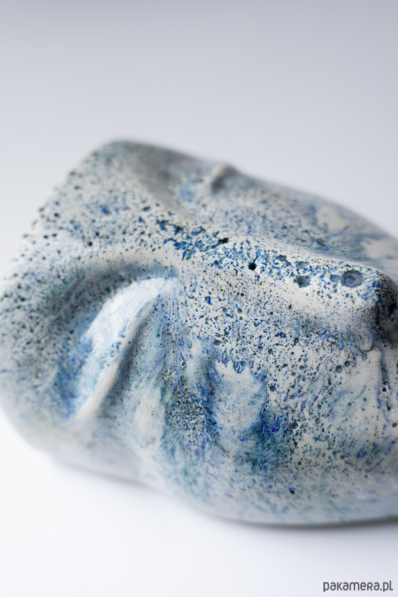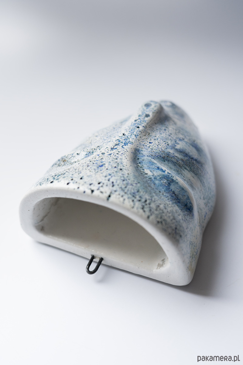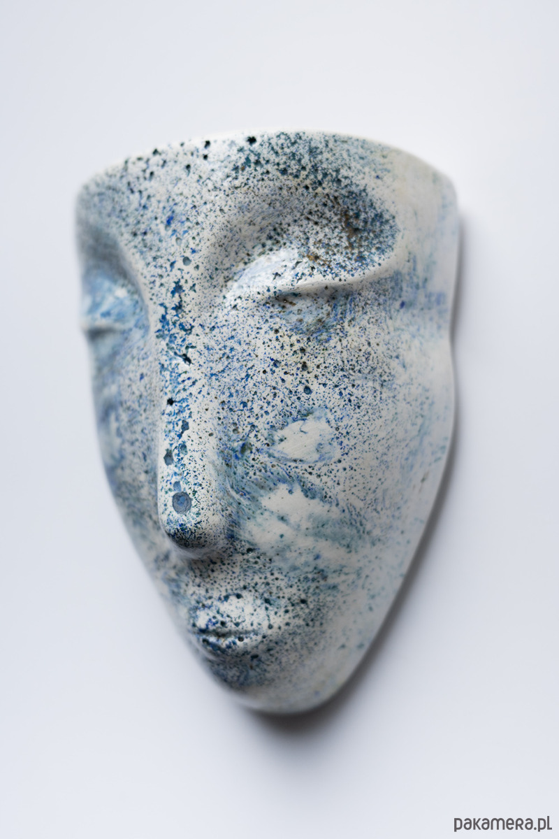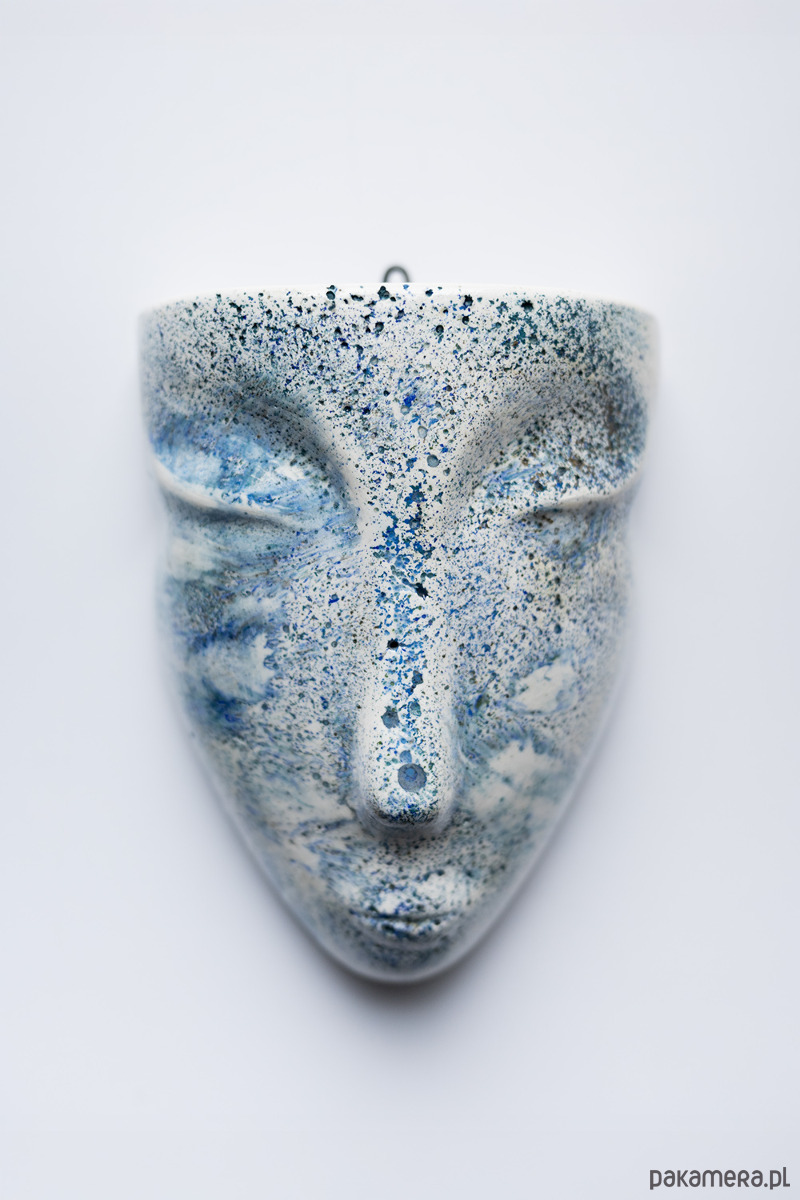 Doniczka głowa na ścianę w niebieskie mazy i kropki